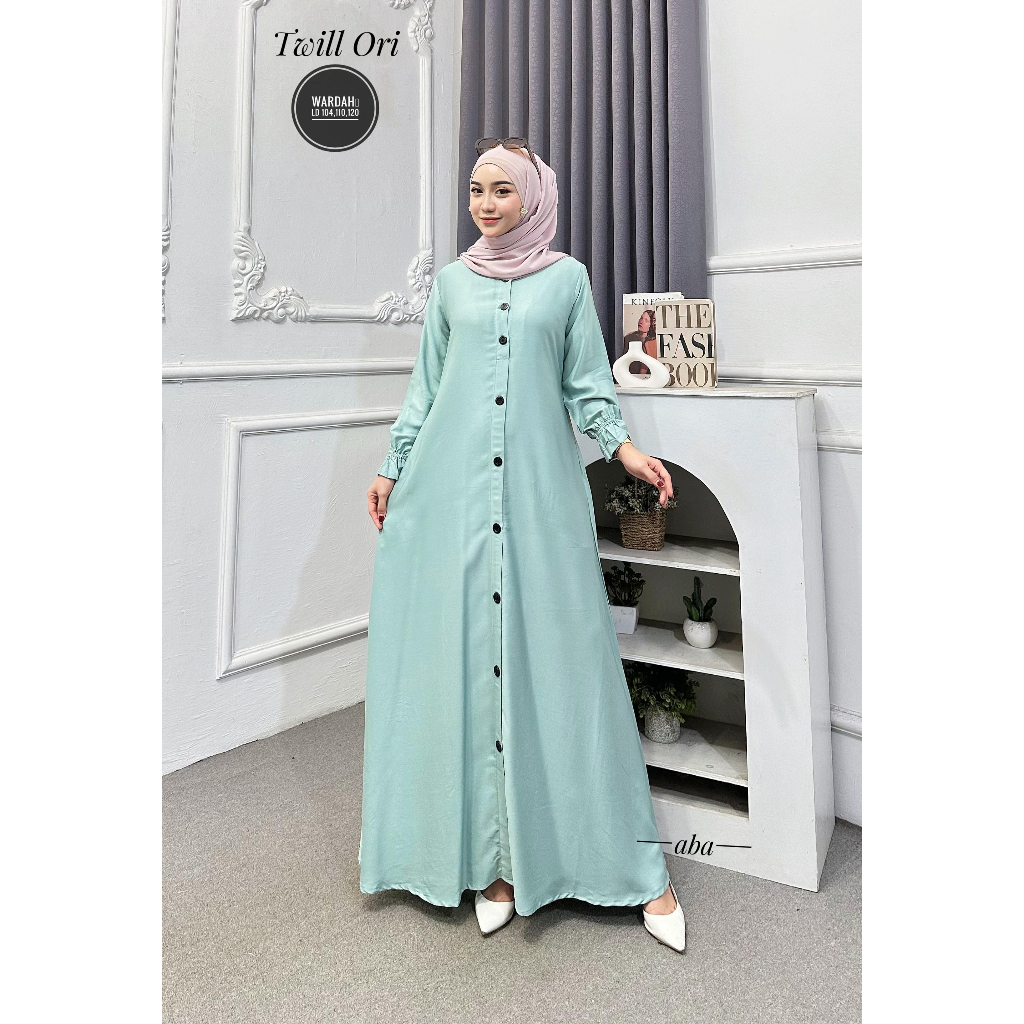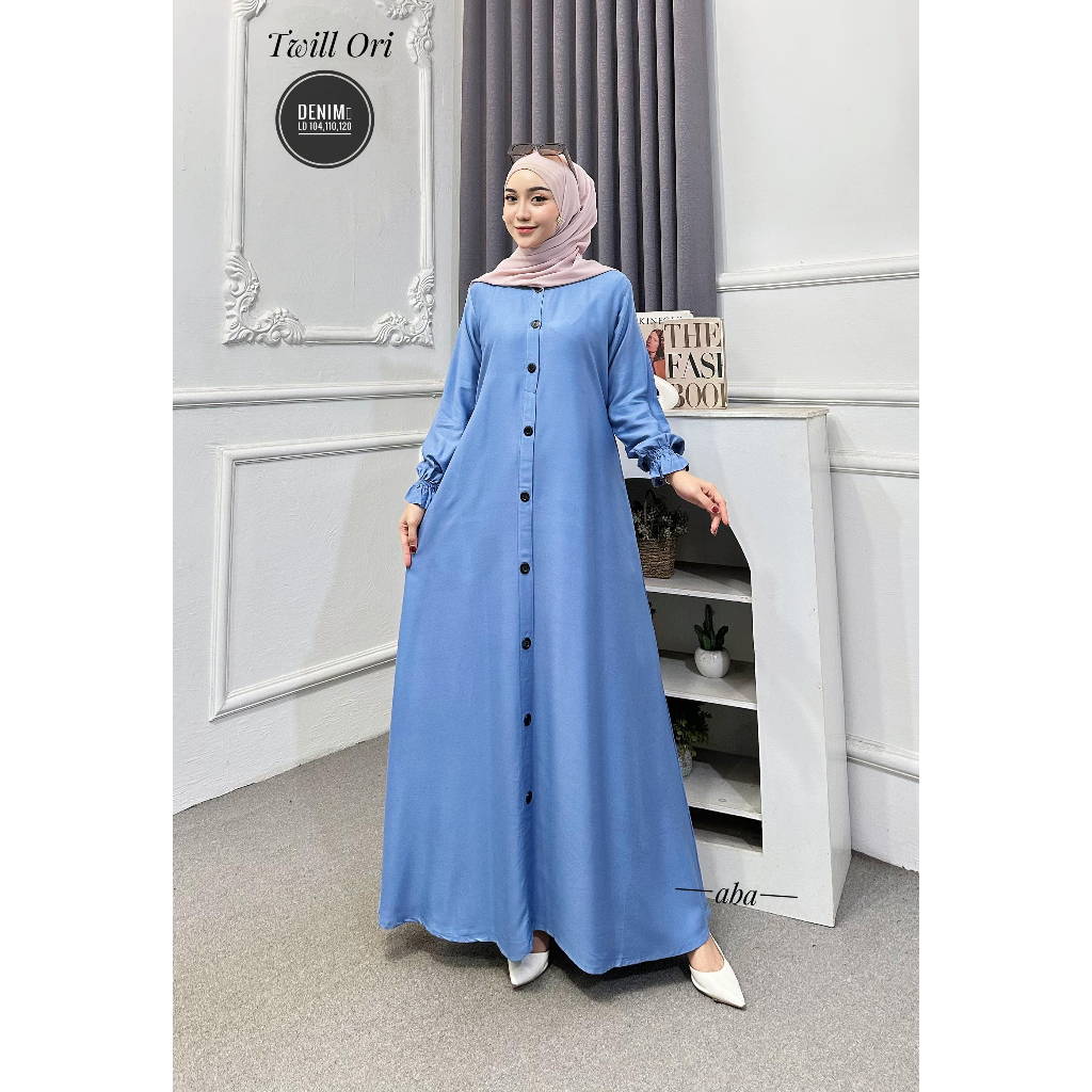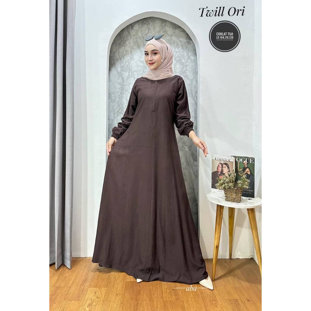 Nikmat Batik - Gamis Polos Putih Bersih - busui kancing dan resleting depan bahan Twill ori bisa COD