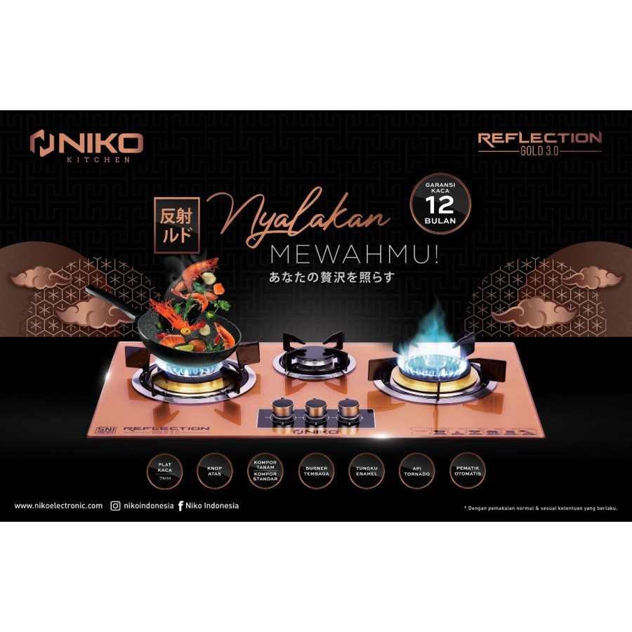 Niko Kompor Gas Reflection Gold 3.0 Knob otomatis body tempered glass Kompor MEWAH