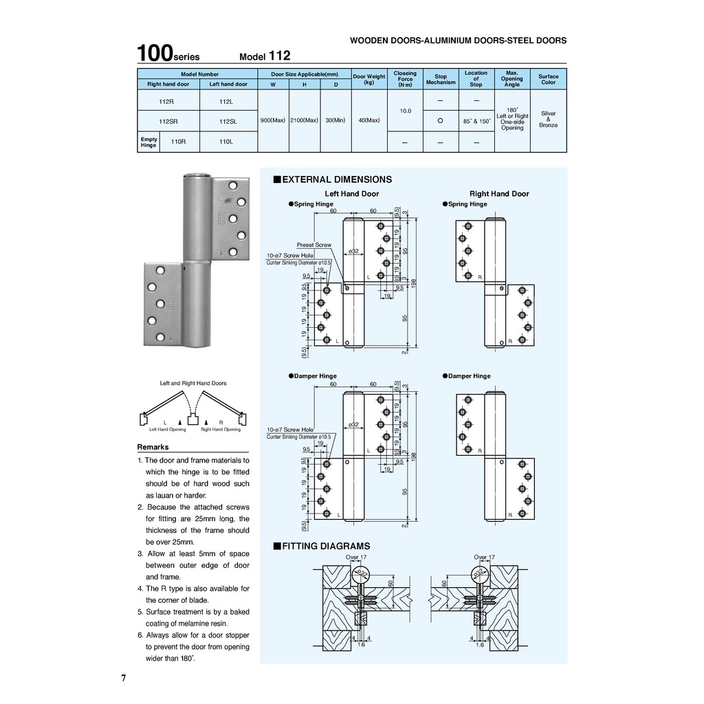 Nitto 112SL/R Auto Hinge Engsel dengan Door Closer Made in Japan Harga per set untuk 1 daun pintu