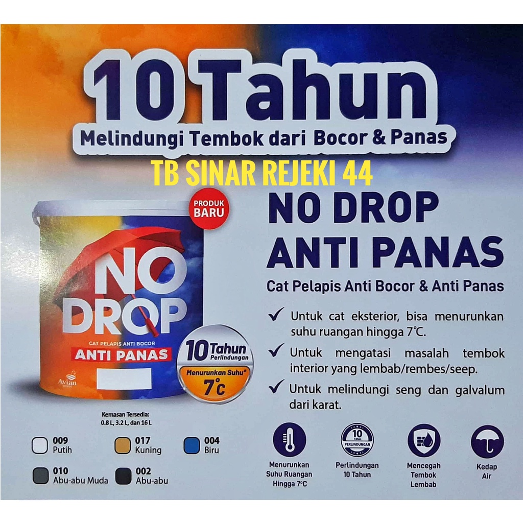 No Drop Anti Panas 3.2 Liter Galon 4 KG Cat Pelapis Anti Bocor & Panas Waterproofing Avian Brands