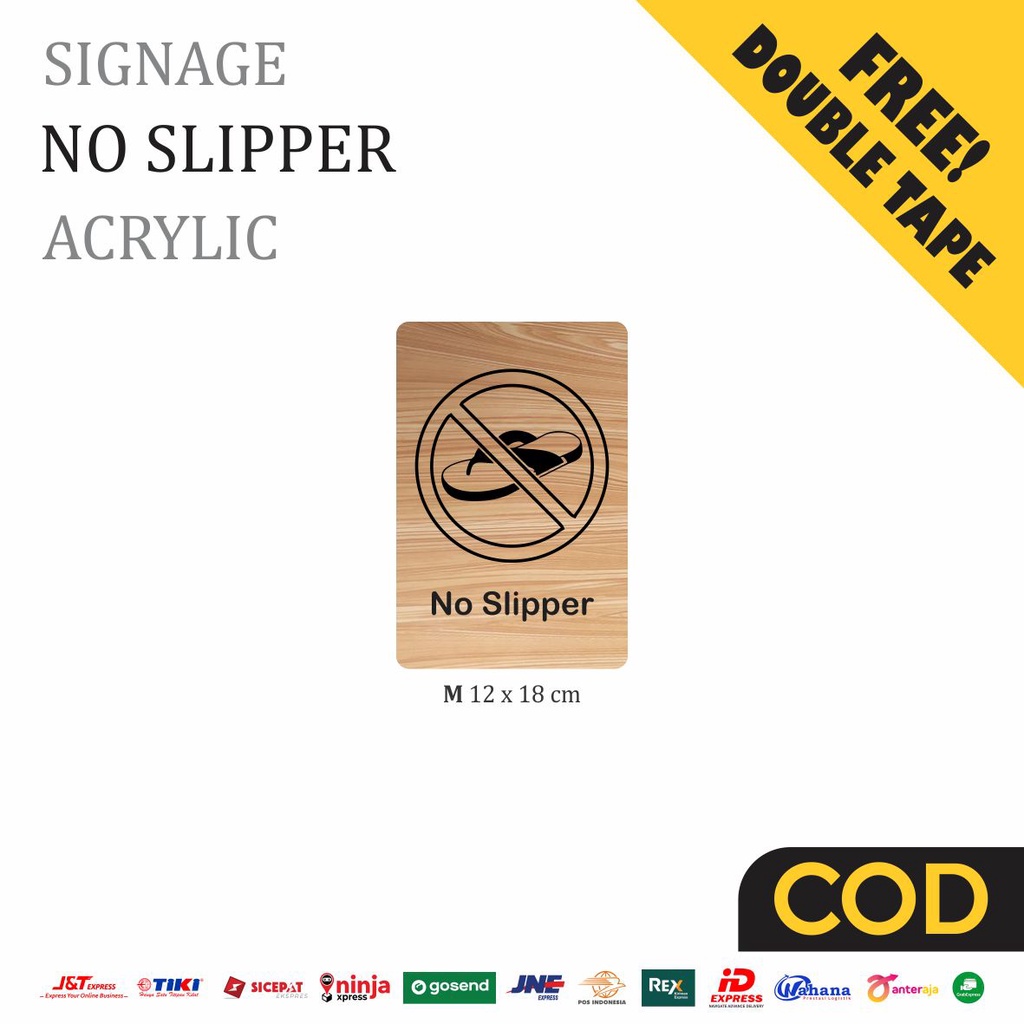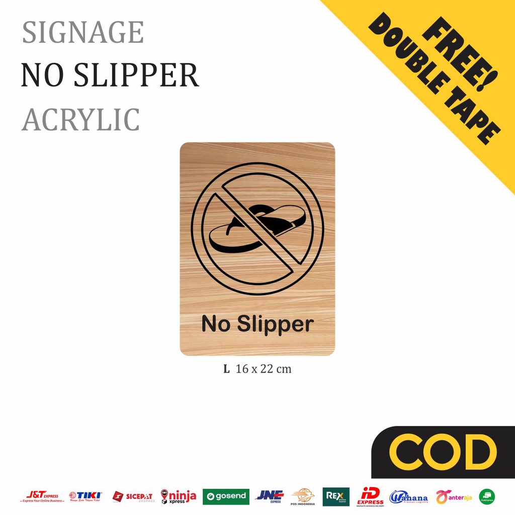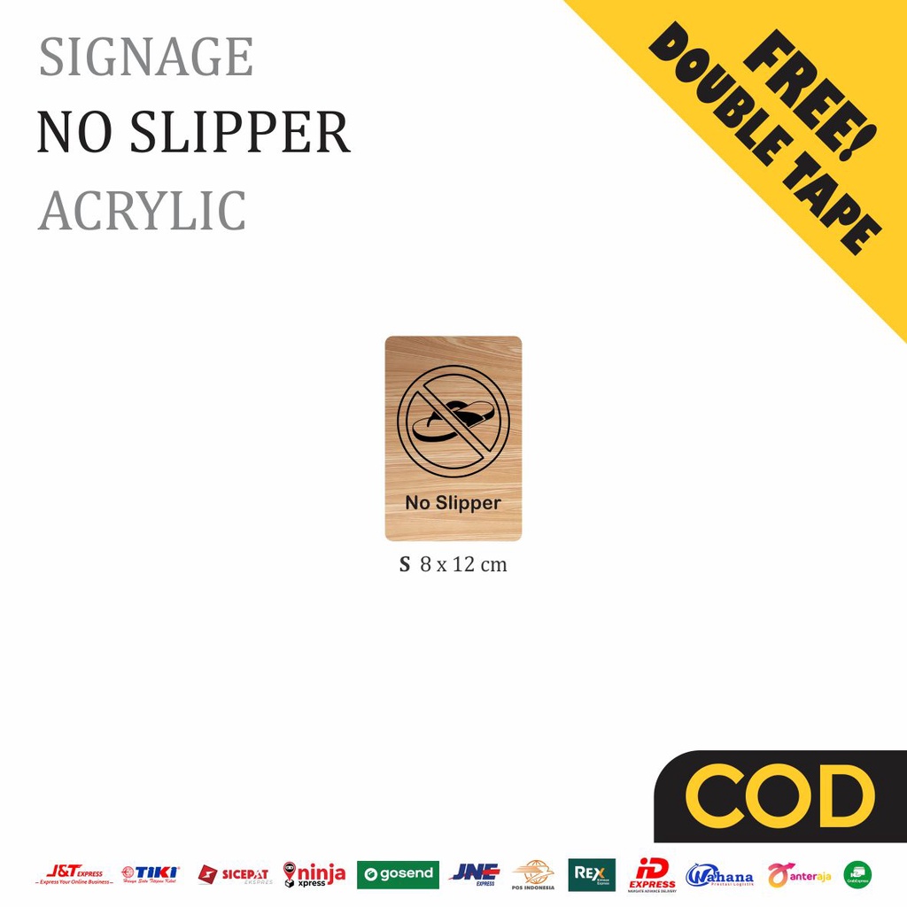 No Slipper Sign Board Kayu Print Signage Label Peringatan Wooden Unik