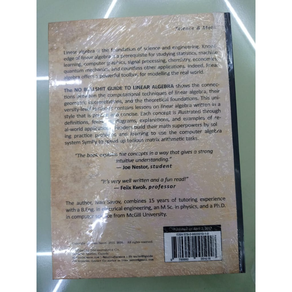 No bullshit guide to linear algebra by Ivan Savov (Hardback / Math)