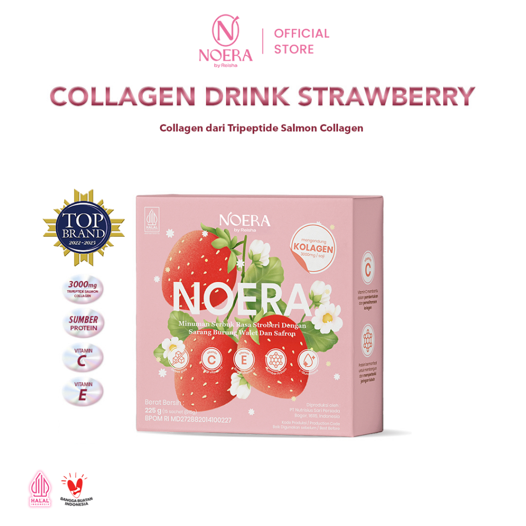 Noera Collagen Drink 3000Mg Tripeptide Salmon With Birdnest and Saffron Extract Improved Formula | Minuman Kolagen Rendah Gula Manis Extract Buah | Kolagen Sumber Protein Vitamin C Vitamin E