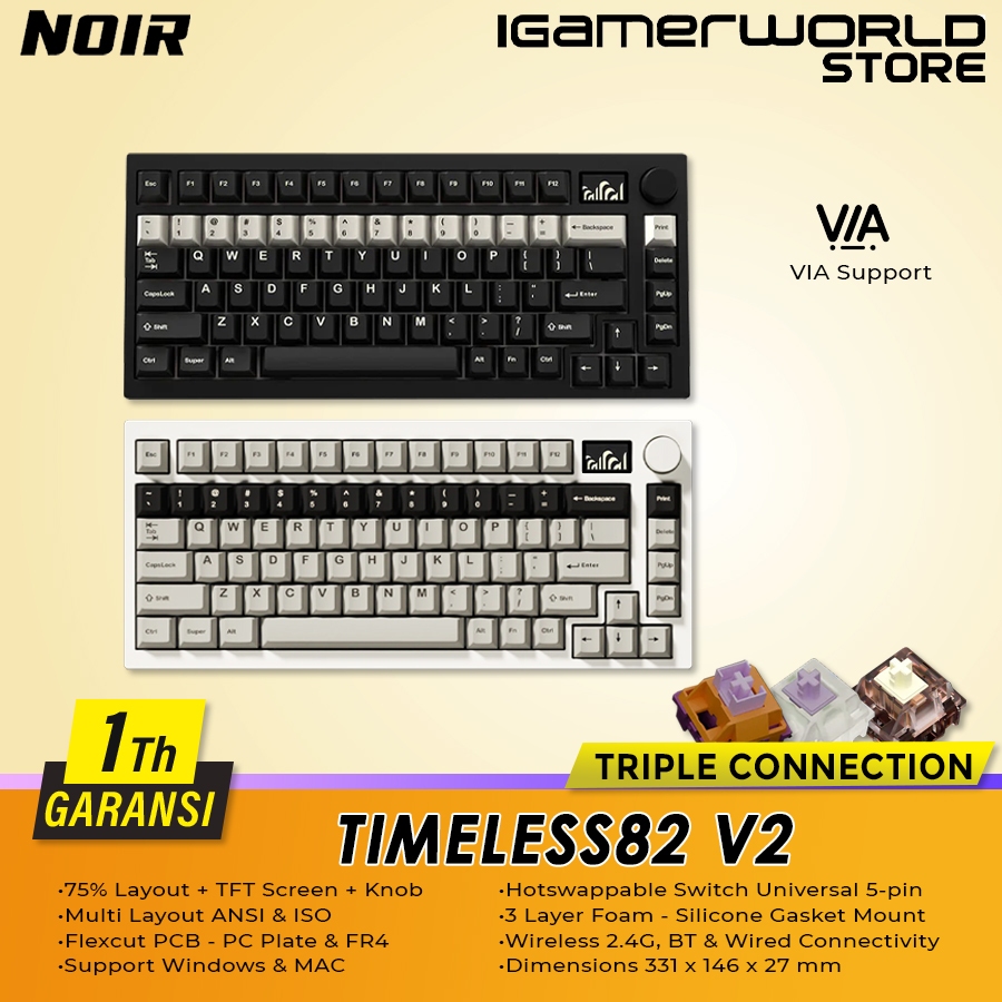 Noir Timeless82 V2 Wireless Bluetooth Triple Connection Mechanical Gaming Keyboard