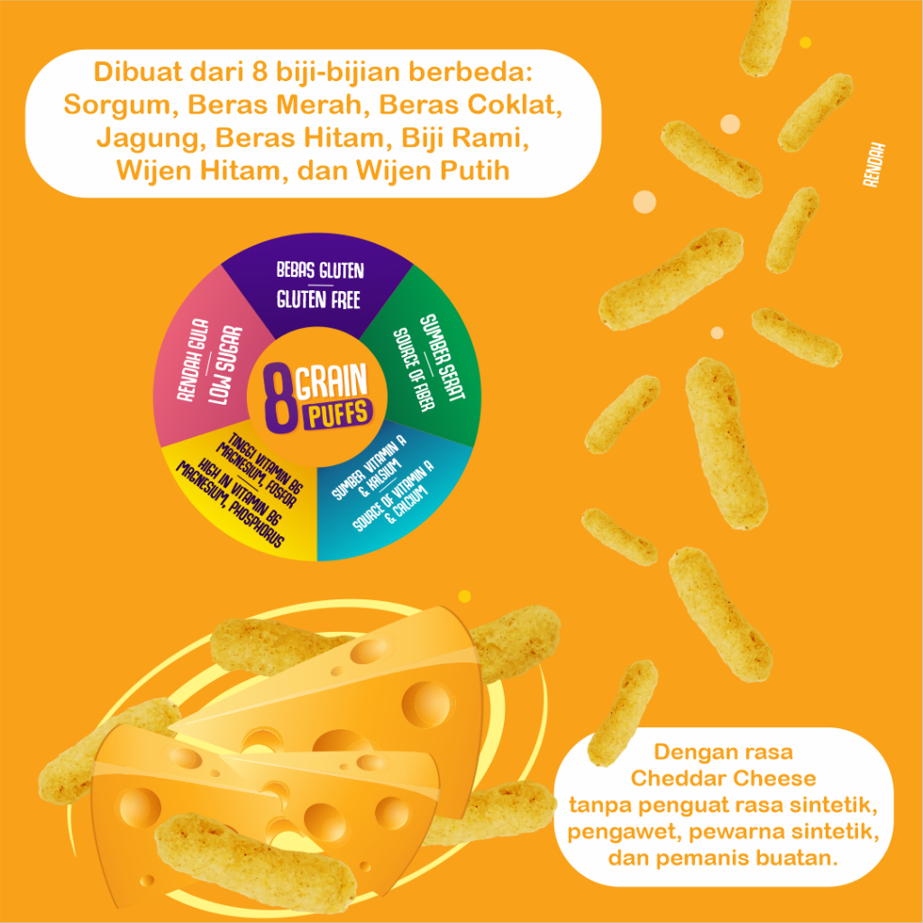 Nola 8 Grain Puffs Cheddar Cheese (Rasa Keju Cheddar) 50 Gram