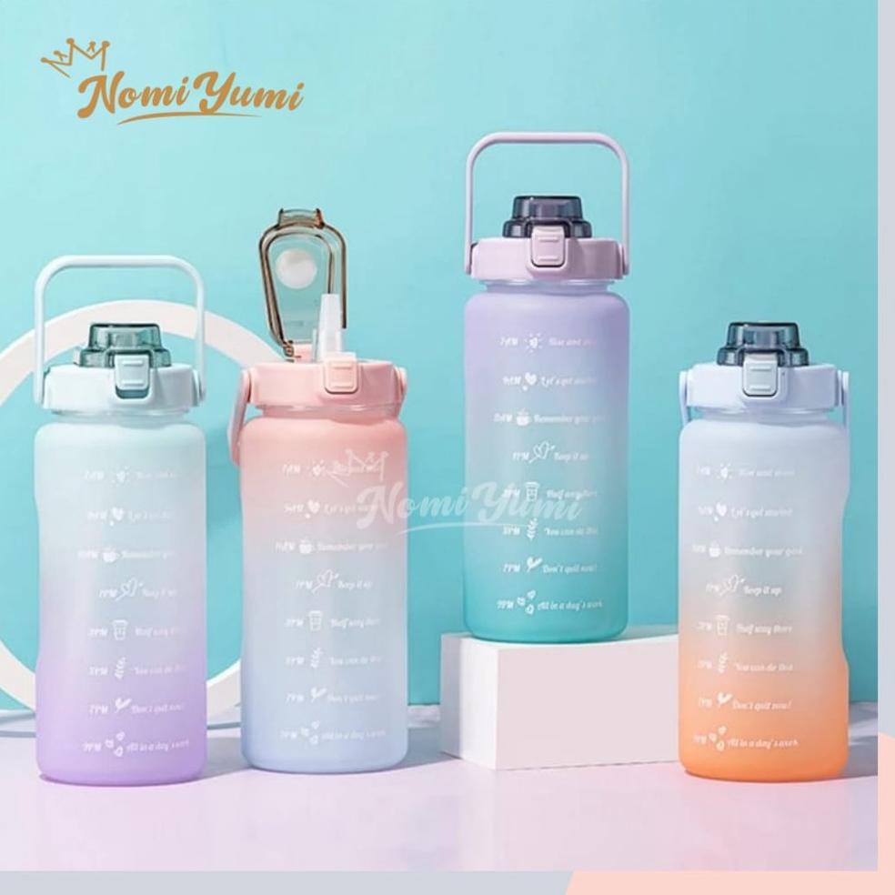 NomiYumi - Botol Air Minum Viral 2 Liter BPA Warna Gradasi Botol Jumbo Tritan Motivasi 1C8