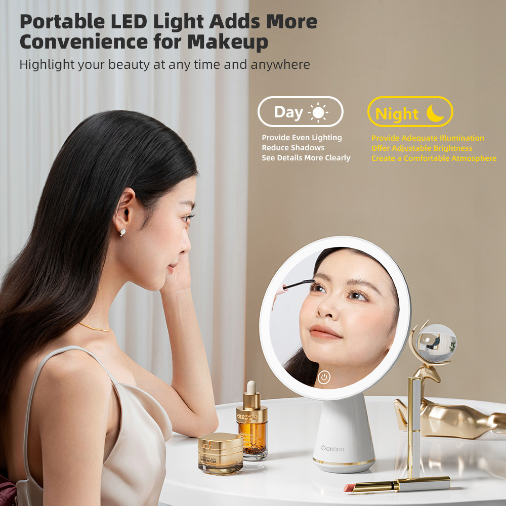GOKOCO 4K LED Makeup Mirror Silver Plated Mirror 3 Brightness Settings Adjustable Mirror Angle Friendly Design Cermin Rias LIVE