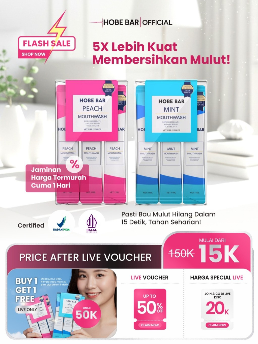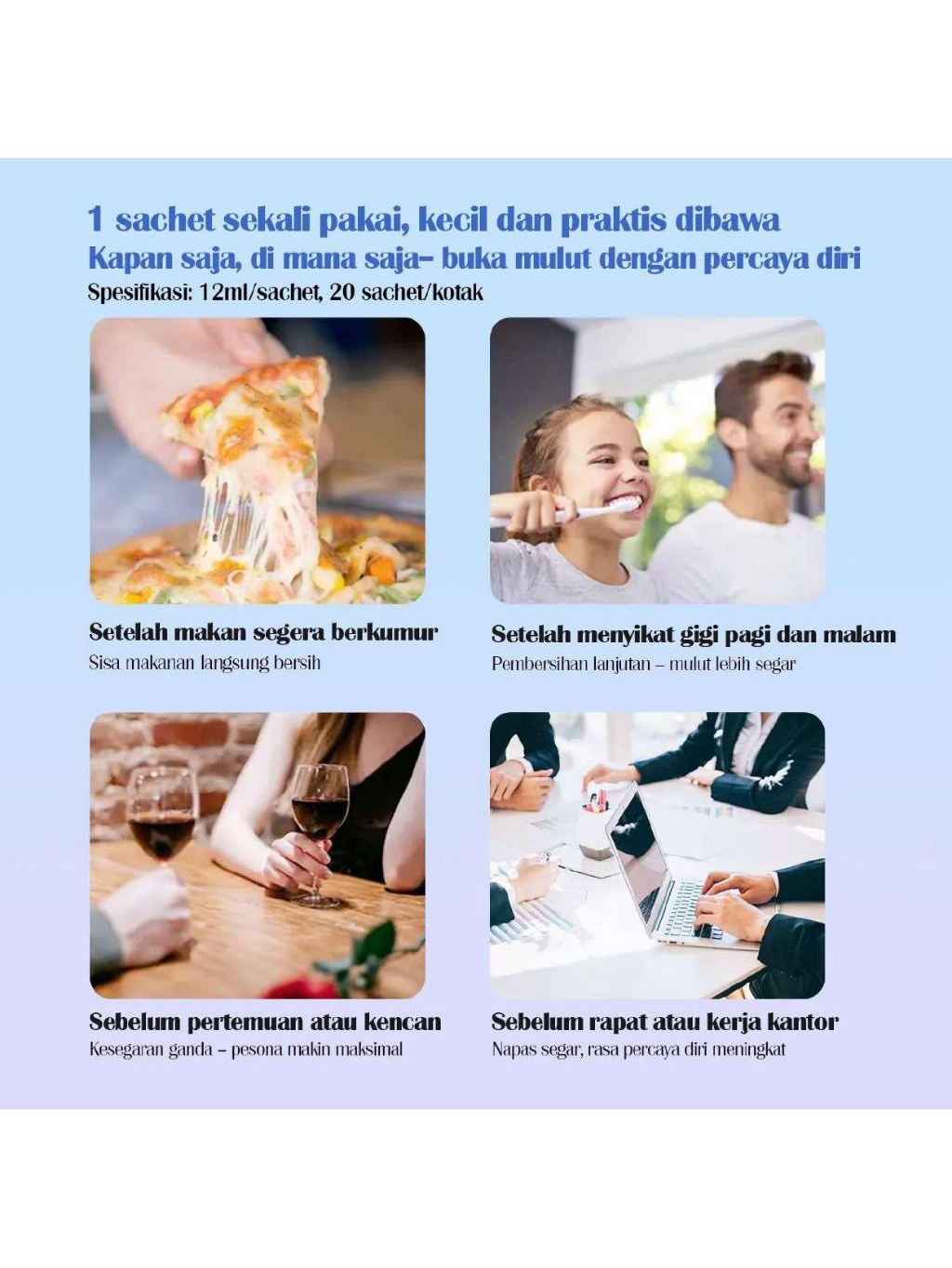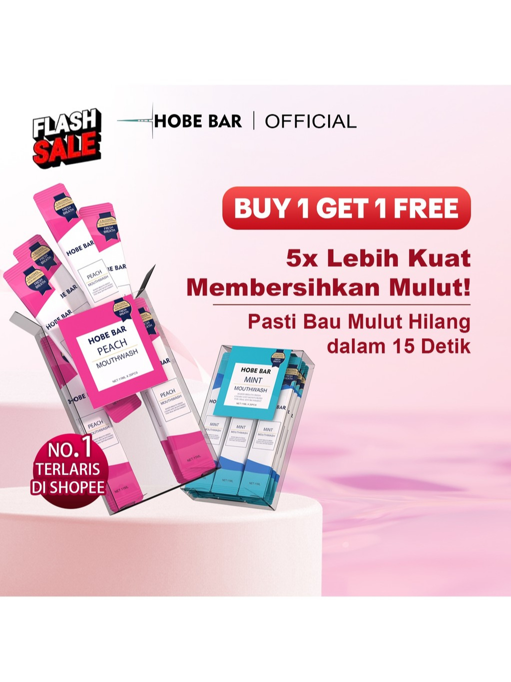 HOBE BAR - Hobebar PORTABLE PROBIOTIC MOUTHWASH | OBAT KUMUR UNTUK HILANGKAN BAU MULUT & PLAK GIGI SECARA INSTAN 20 SASET 1 BUNGKUS | Antiseptic Mouthwash /Obat Kumur Antiseptik, Efektif Membunuh Bakteri Dalam 30 Detik & Menyegarkan Nafas Seharian
