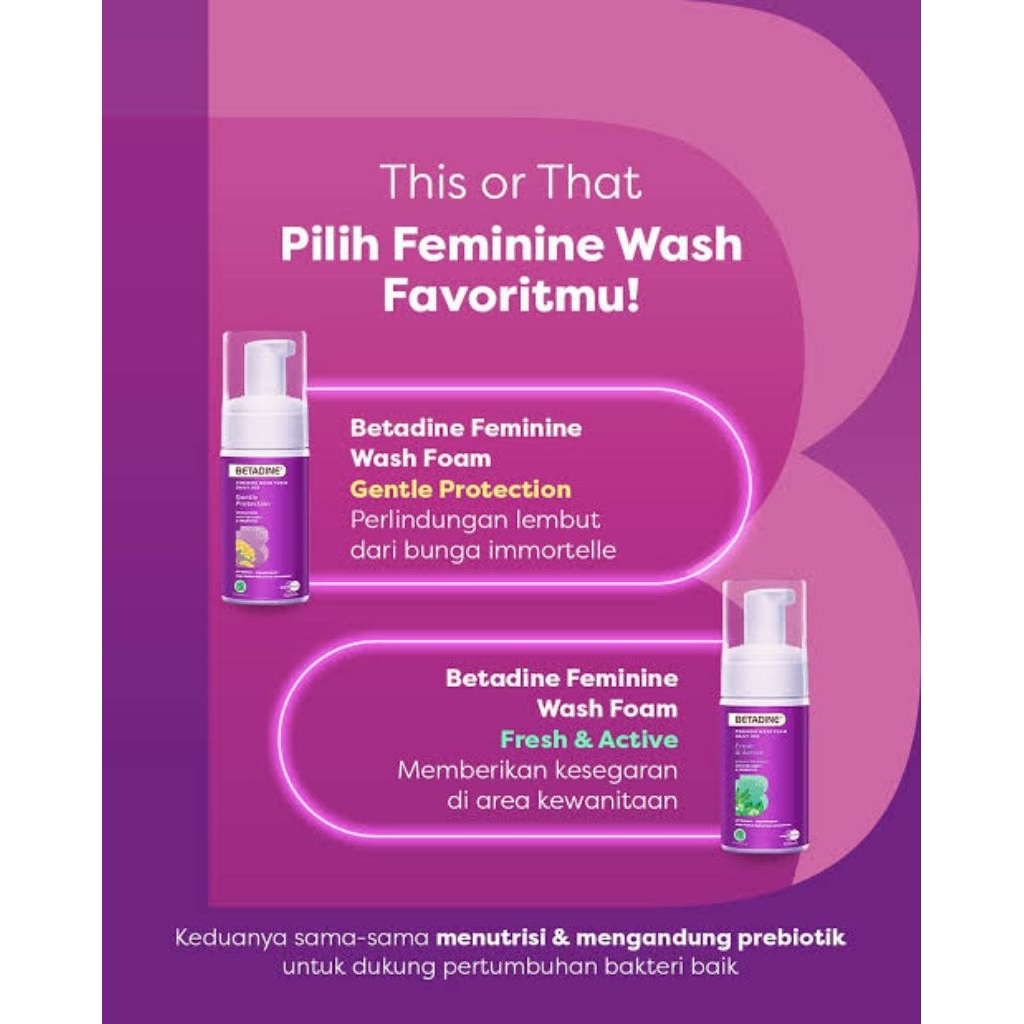 Betadine Feminine Wash Foam 100ml / Betadine Feminine Wipes Gentle Protection 1 pak