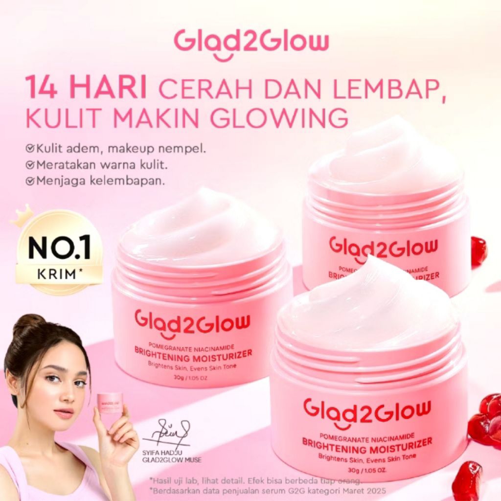 Glad2Glow [Ready Stock] POMEGRANATE 5% NIACINAMIDE BRIGHTENING 30g MOISTURIZER UNTUK MENCERAHKAN WAJAH WHITENING GLOWING ORIGINAL FREE BUBBLE