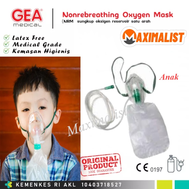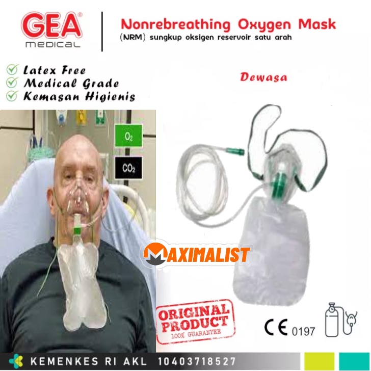 Non Rebreting Mask - Masker Oksigen Non Rebreting - Selang Masker Oxygen NRM - Sungkup Oksigen - Masker Oksigen Non Rebreting Dewasa - Non Rebreting Anak