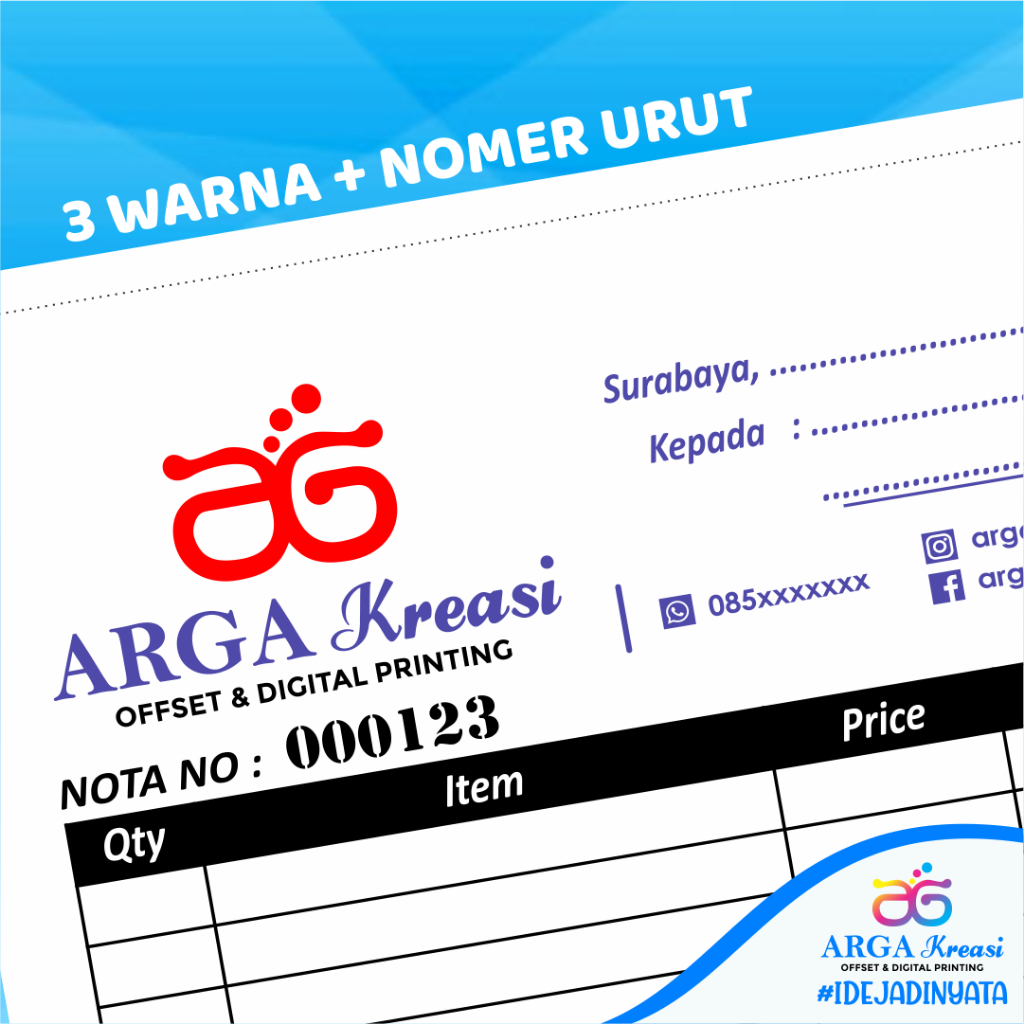 Cetak Kwitansi Custom 3 Ply NCR 1/3 F4 (21x10,5cm) - Faktur & Nota Resto Rangkap 3 - Isi 50 Set