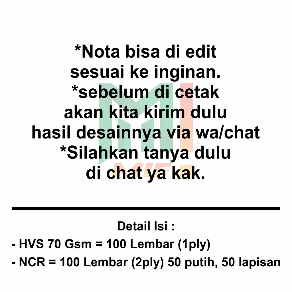 Nota Custom/nota penjualan - ukuran 1/2