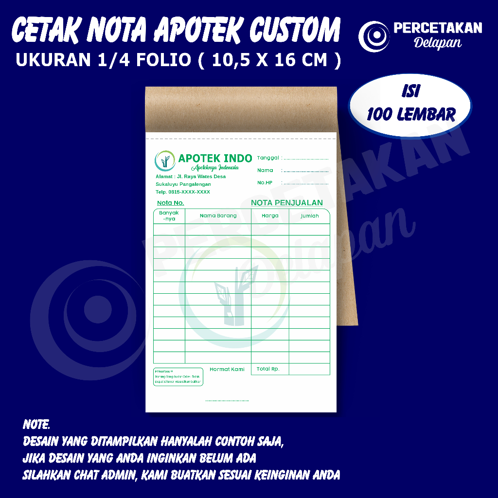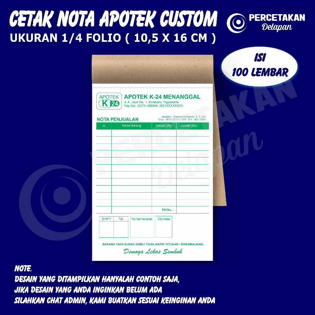 Nota apotek custom 10,5 x 16 cm - Nota apotik - kwitansi apotek - nota penjualan