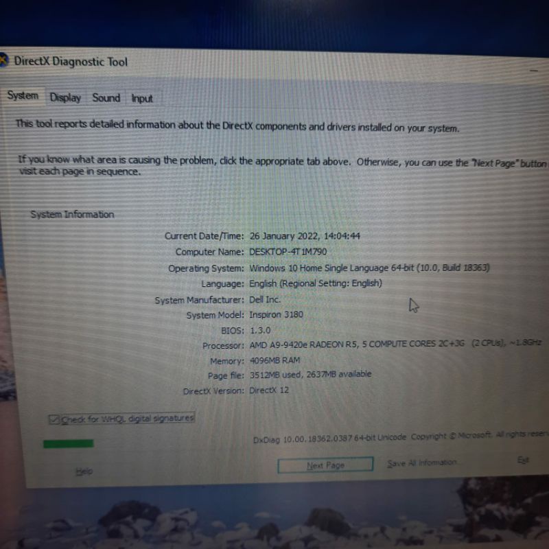 Notebook Dell inspiron P24T Amd A9-9420e Gen 7 Ram 4GB/SSD 128/HDD 500GB Vga Amd Radeon R5 Graphic