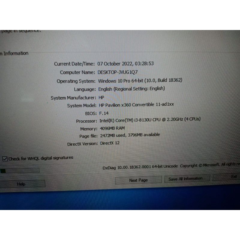 Notebook HP pavilion X360 11-AD107TU Ram 4gb HDD 1000gb core i3 Gen8 layar sentuh