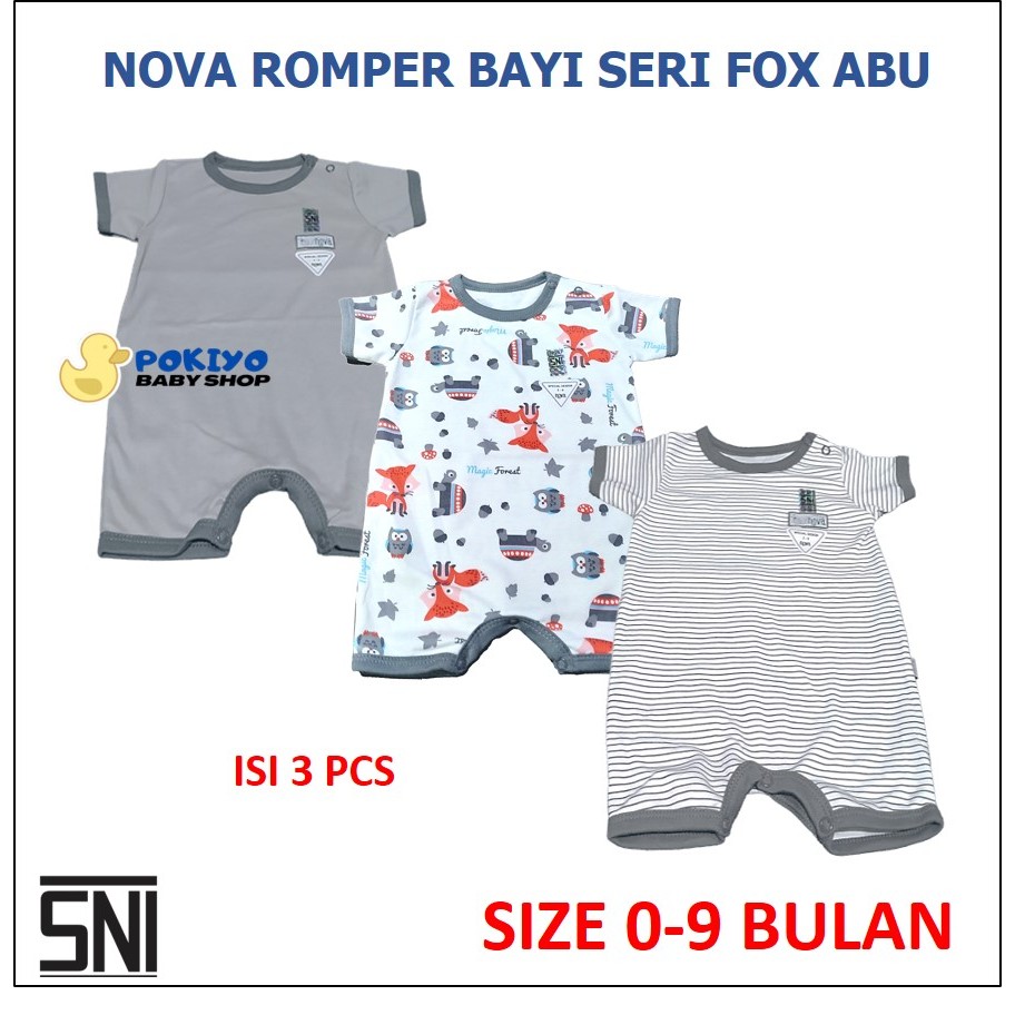 Nova Romper Jumper Bayi Segiempat Seri Abu dan Coklat SNI 0-9 Bulan
