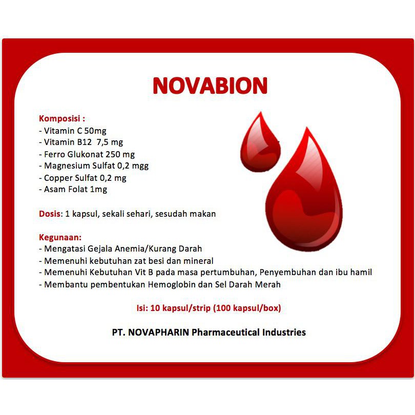 Novabion Vit C, B12 dan Mineral Penambah Darah 1 Box isi 100 Kapsul Termurah + Free Buble Wrap READY