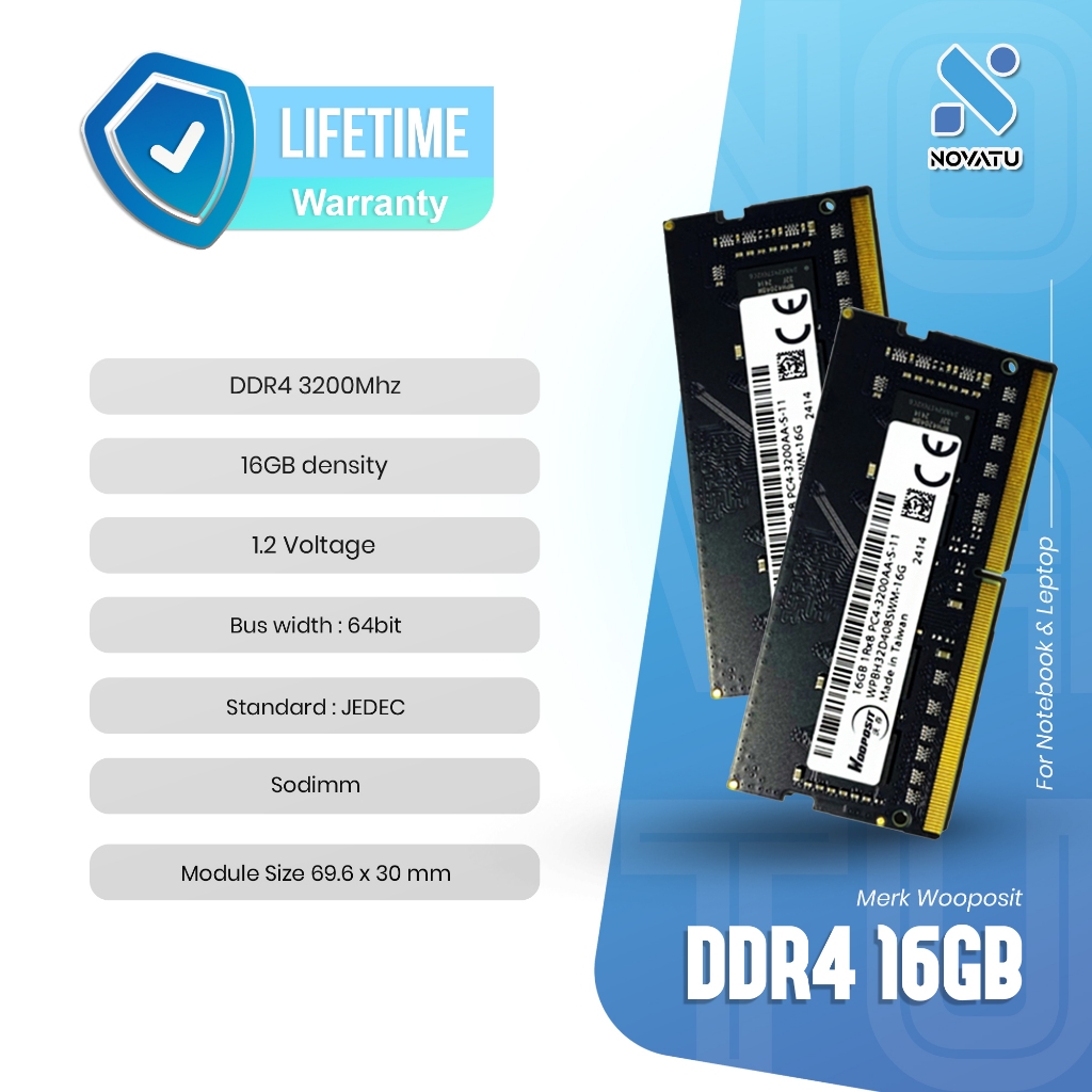 Novatu Gaming - Ram DDR4 16GB 3200Mhz Sodimm Merk Wooposit Ram Notebook Dan Laptop