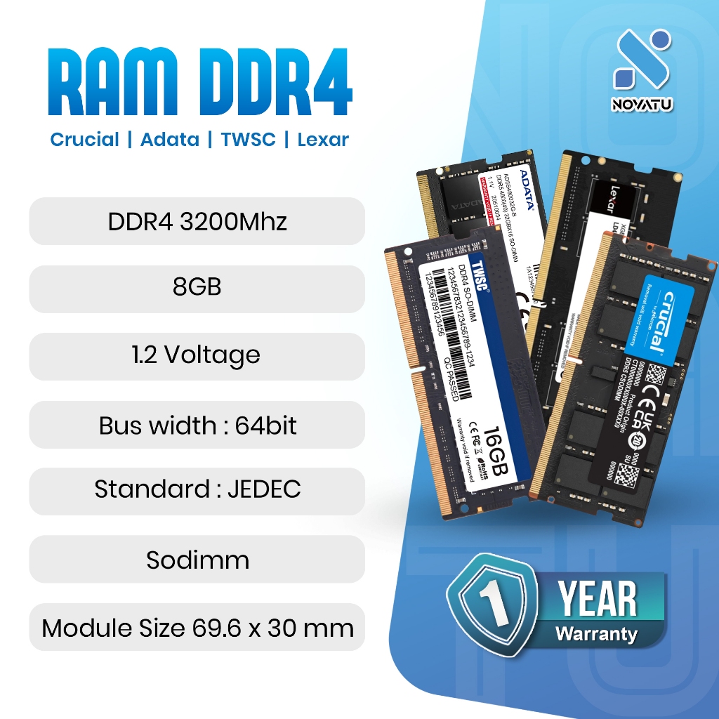 Novatu Gaming - Ram DDR4 8GB 3200Mhz Sodimm Merk Ram Notebook Dan Laptop