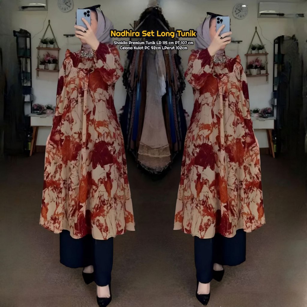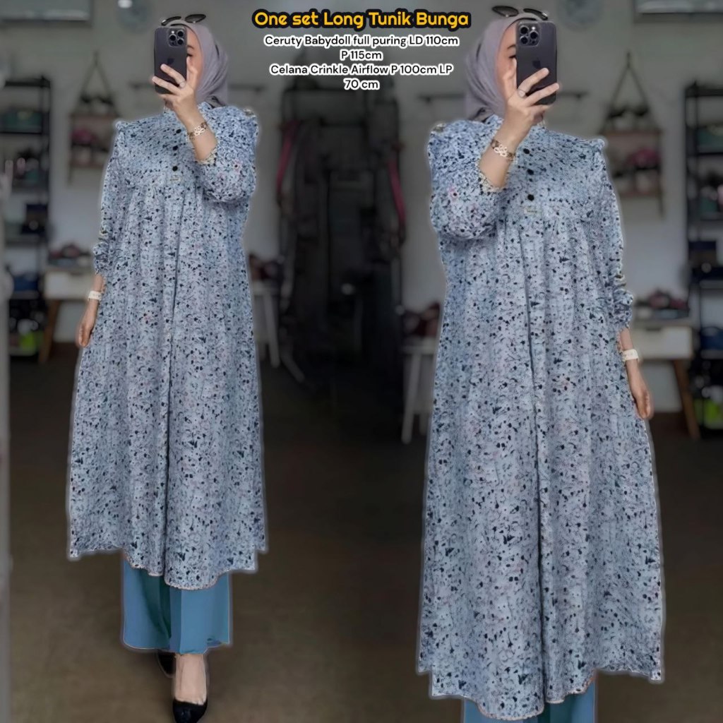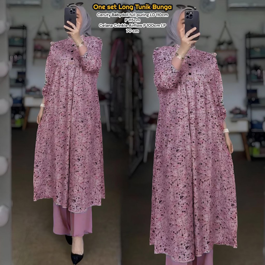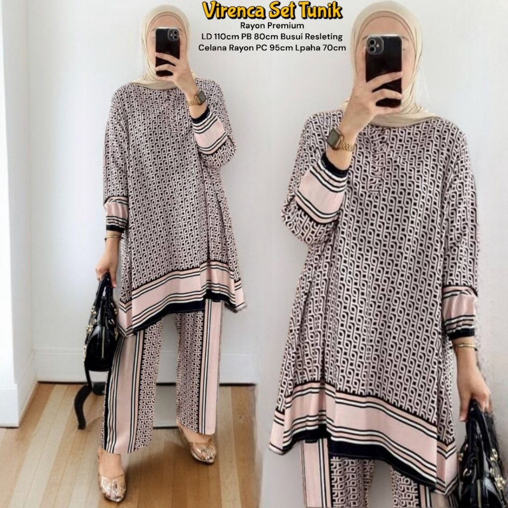 Novela Set Tunik - One Set Wanita Kekinian Rayon Premium Baju Setelan Wanita Celana Kulot LD 110 cm