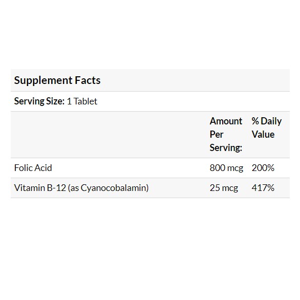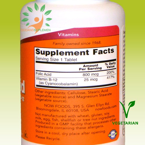 Now FOLIC ACID With Vitamin B-12 800 Mcg -- 250 Tablets - Asam Folat -- Kesuburan Dan Jantung