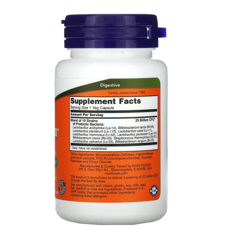 Now Foods Probiotic 10 - 25 Billion - 50 Veg Caps - Non GMO Halal