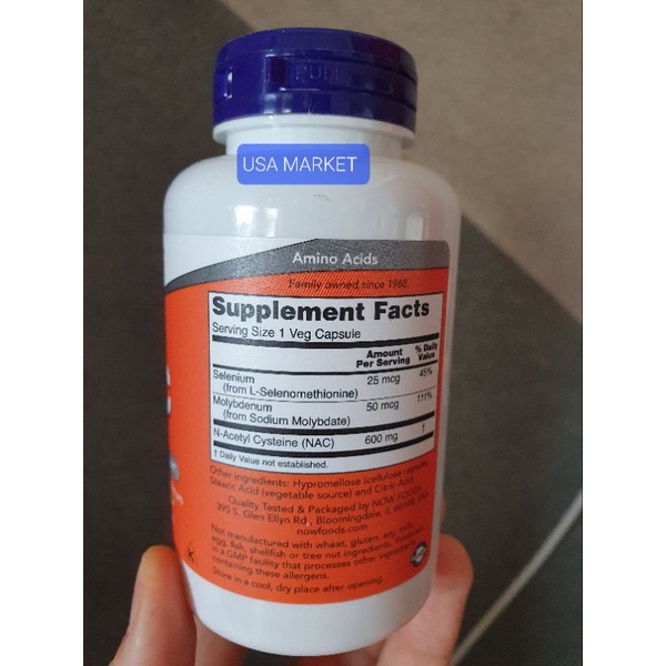 Now NAC Amino Acid 600 mg with Selenium N Acetyl L Cysteine 100 capsules