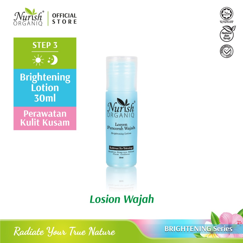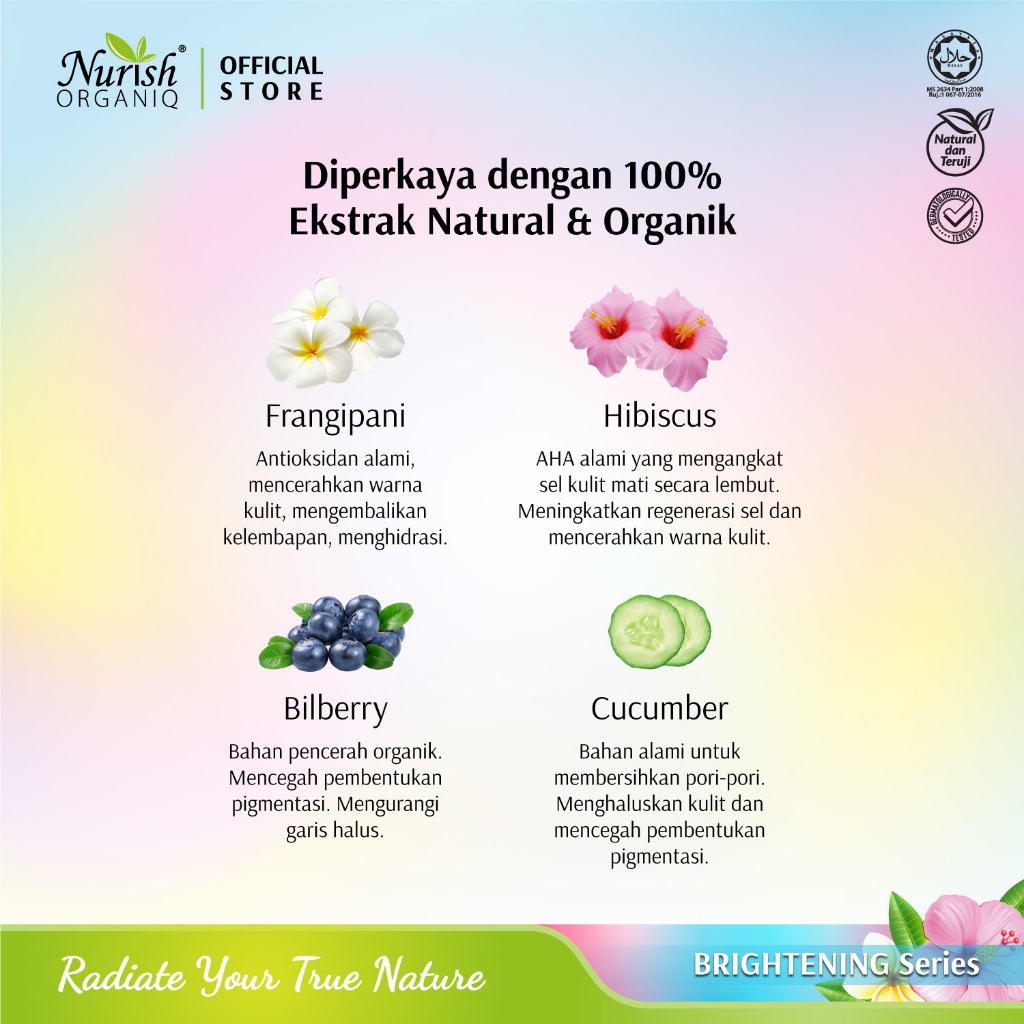 Nurish Organiq Brightening Lotion 30 ml - Toner dengan tekstur ringan diformulasikan dengan ekstrak natural dan organik [ Frangipani | Hibiscus | Bilberry | Cucumber ]