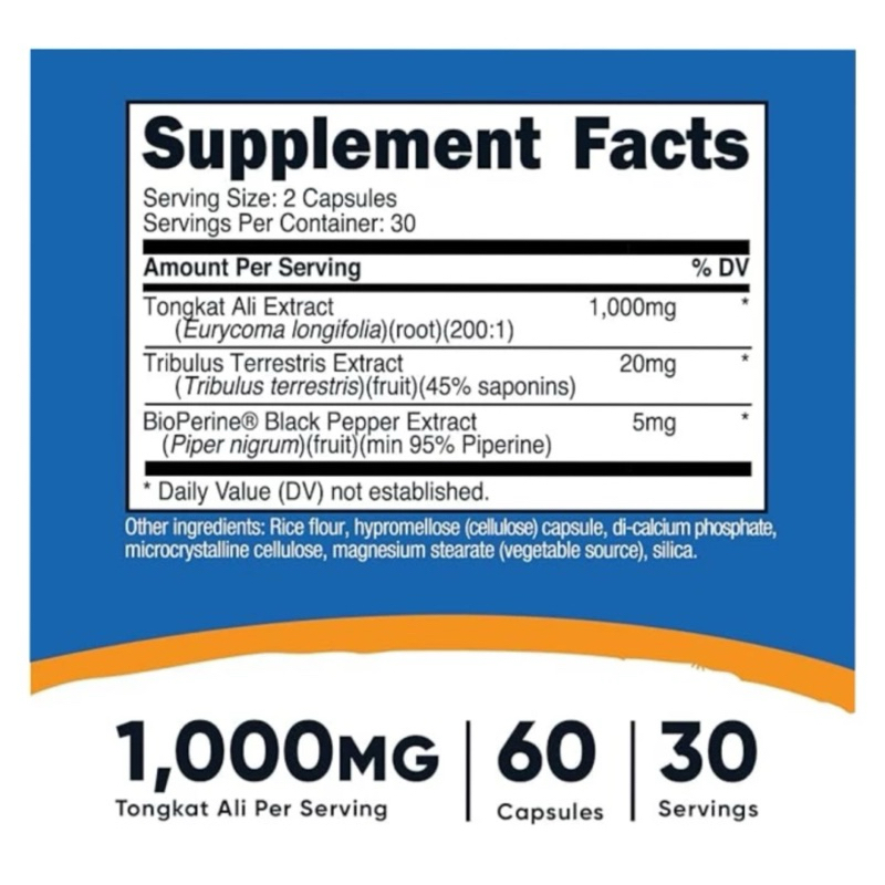 Nutricost Tongkat Ali 1,000mg 60 Capsules - with Tribulus Terrestris and BioPerine, Vegetarian