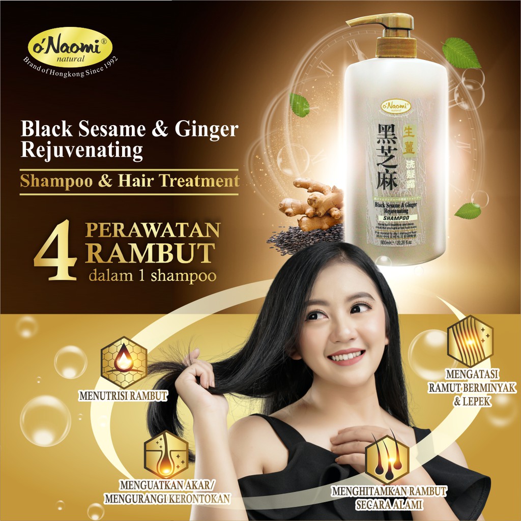 o’Naomi Black Sesame Shampoo 600ml Akar Rambut Rontok Beruban onaomi natural 1992 o naomi sampo penghitam