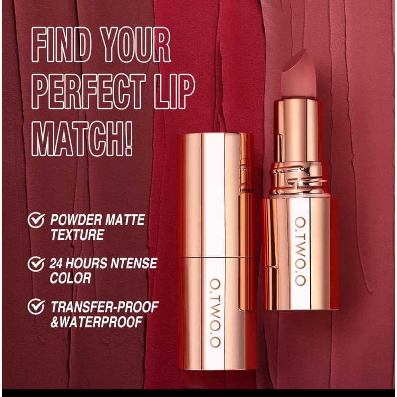 O.TWO.O OTWOO Matte Lipstick Misty Kiss Lock Color Silky 24H Long Lasting Lip Makeup BPOM O2O