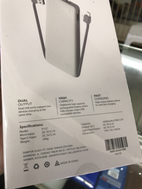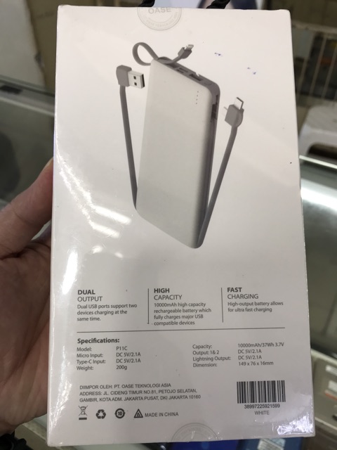 OASE P11C Power Bank 10000 mAh Original - White - Garansi Resmi OASE 6 Bulan
