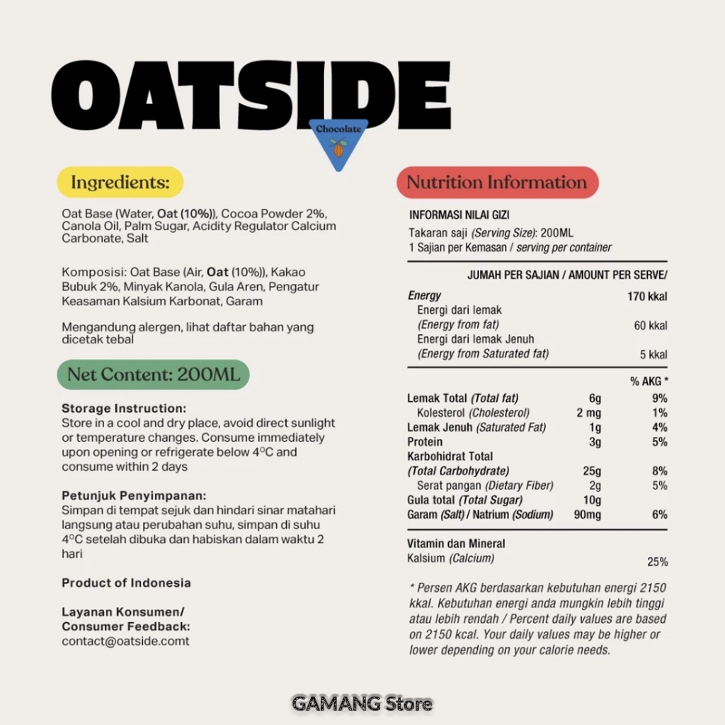 OATSIDE Mini Cap Oat Milk Chocolate 200ml (24 pcs) (Kemasan Tutup Botol)
