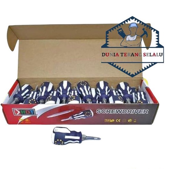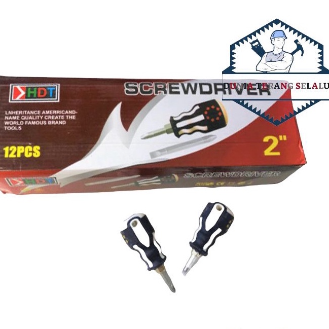 OBENG BOLAK BALIK CEBOL HDT gagang Karet - Obeng 2 in - Obeng BB Cebol Bendera - Obeng Pendek BolakBalik - Stubby Screwdriver 2" HDT
