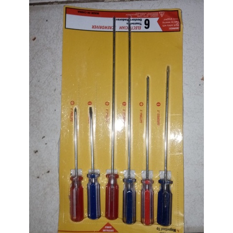 OBENG KURUS PANJANG SET 6 PCS OBENG RADIO TV MIN PLUS OBENG KEMBANG PIPIH SERVIS ELEKTRONIK LENGKAP