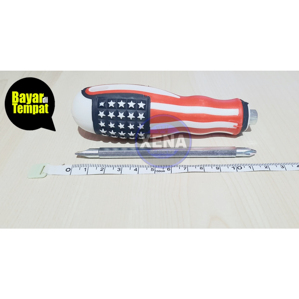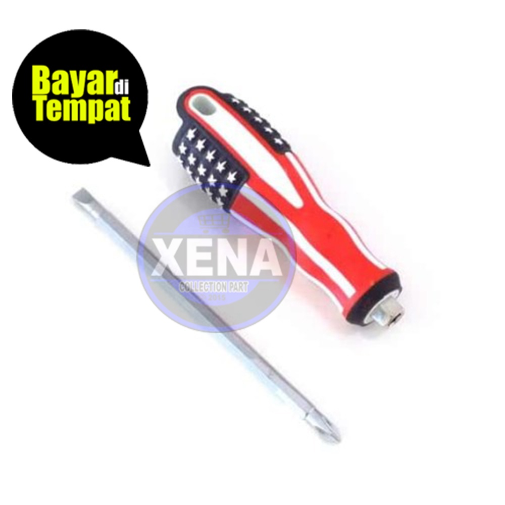 OBENG MIN PLUS AMERIKA 2IN1 OBENG BOLAK BALIK / OBENG 2 IN 1 JUMBO BODY BESAR (MOTIF USA AMERICA) 4INCH / MATA PLUS & MINUS - + TERMURAH HIGH QUALITY