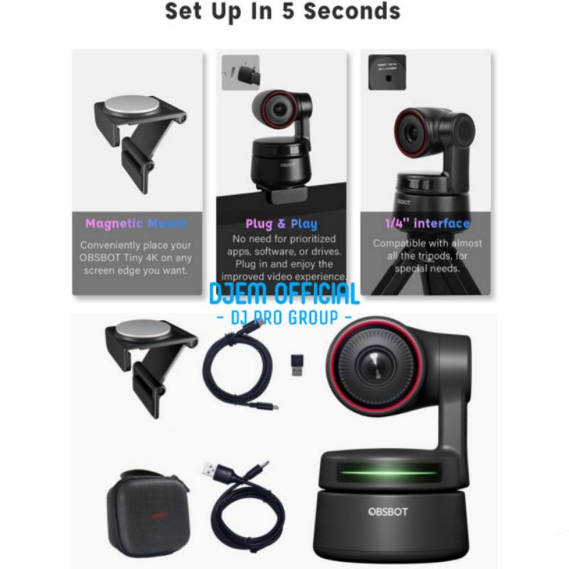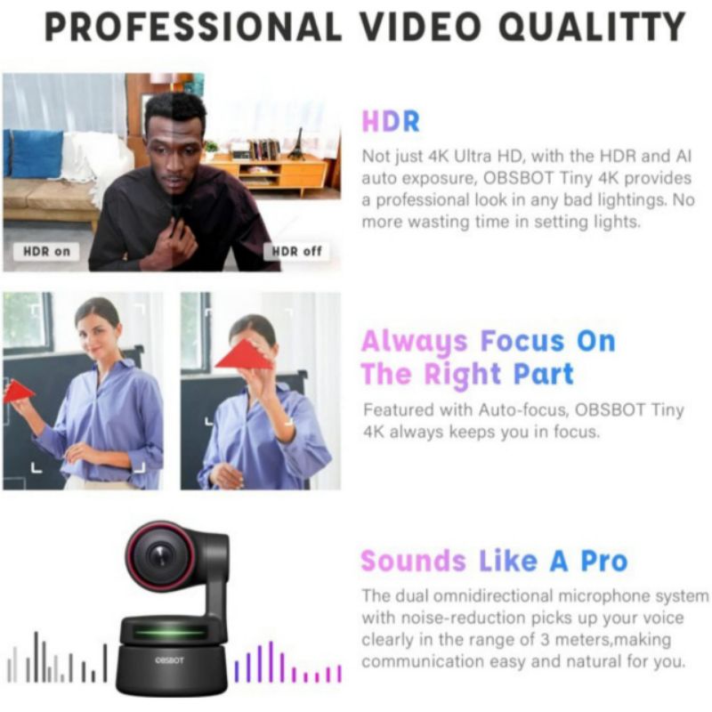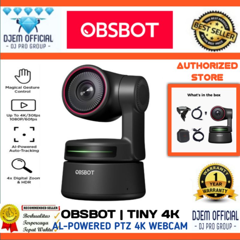 OBSBOT Tiny 4K AI Powered PTZ 4K Webcam Portable HDR 4x Digital Zoom Gesture Control Auto Focus Auto Tracking