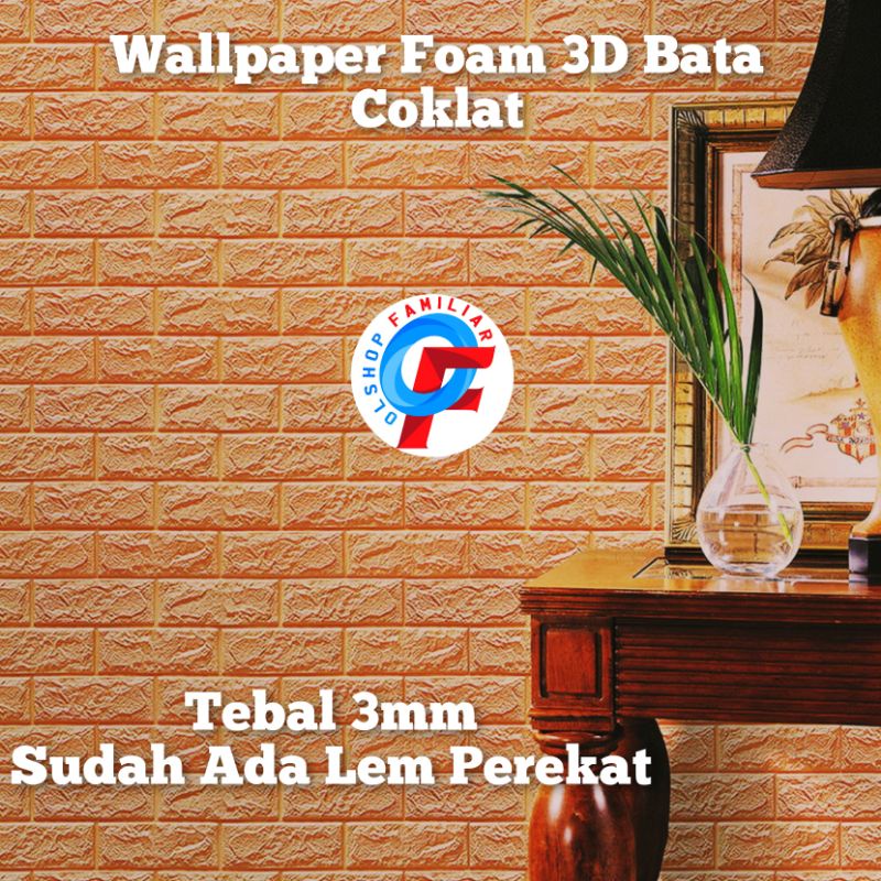 OF Wallpaper Bata Coklat Wall Paper Foam 3D Stiker Premium Warna Coklat Bata Timbul