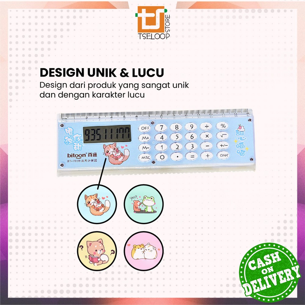 OFM-A65 Kalkulator Penggaris Karakter 2IN1 Mini Portable Multifungsi / Kalkulator 8 Digit Penggaris 15cm / Perlengkapan Sekolah Anak Praktis / Ruler Set Calculator Import