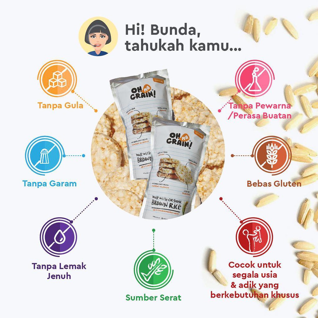 OH MA GRAIN RICE CRACKERS BERAS | KERIPIK KREKERS RICE CRISPY NON MSG SNACK CEMILAN DIET CAMILAN SEHAT ANAK