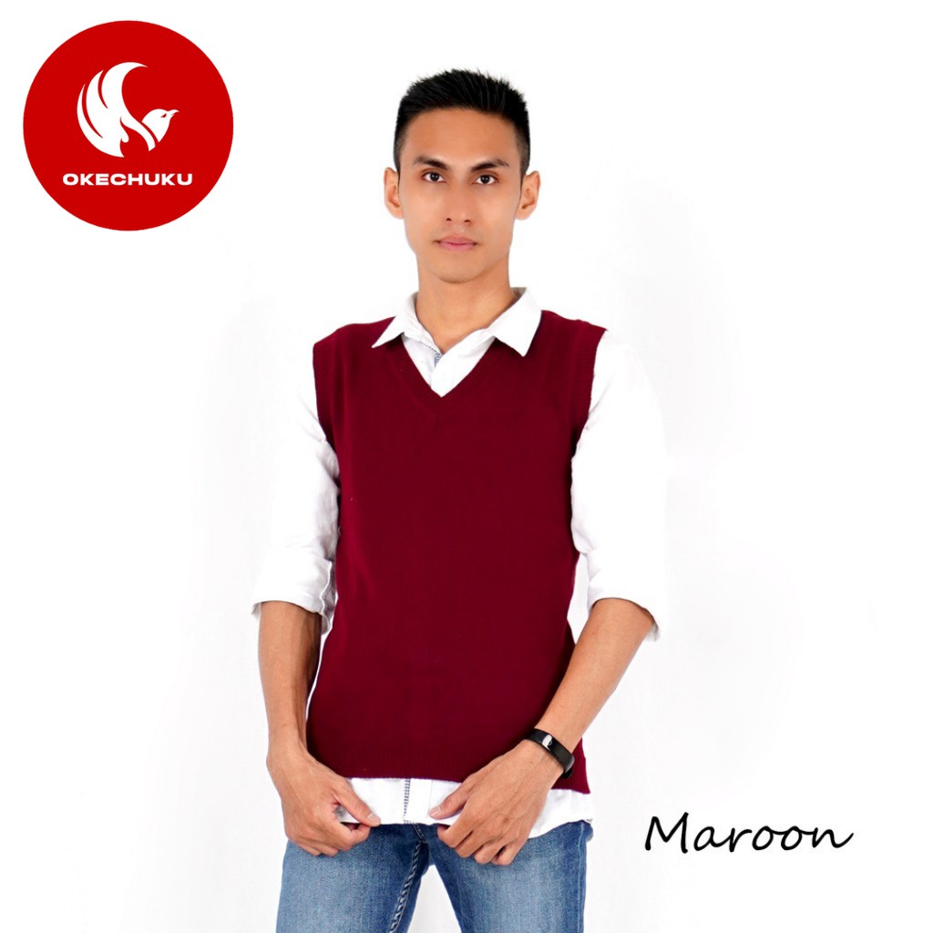 OKECHUKU Rompi Rajut Pria Polos / Basic Knit Vest Rompi Seragam / Rompi Polos