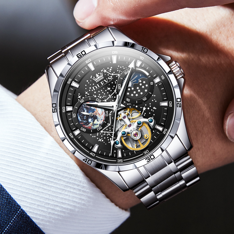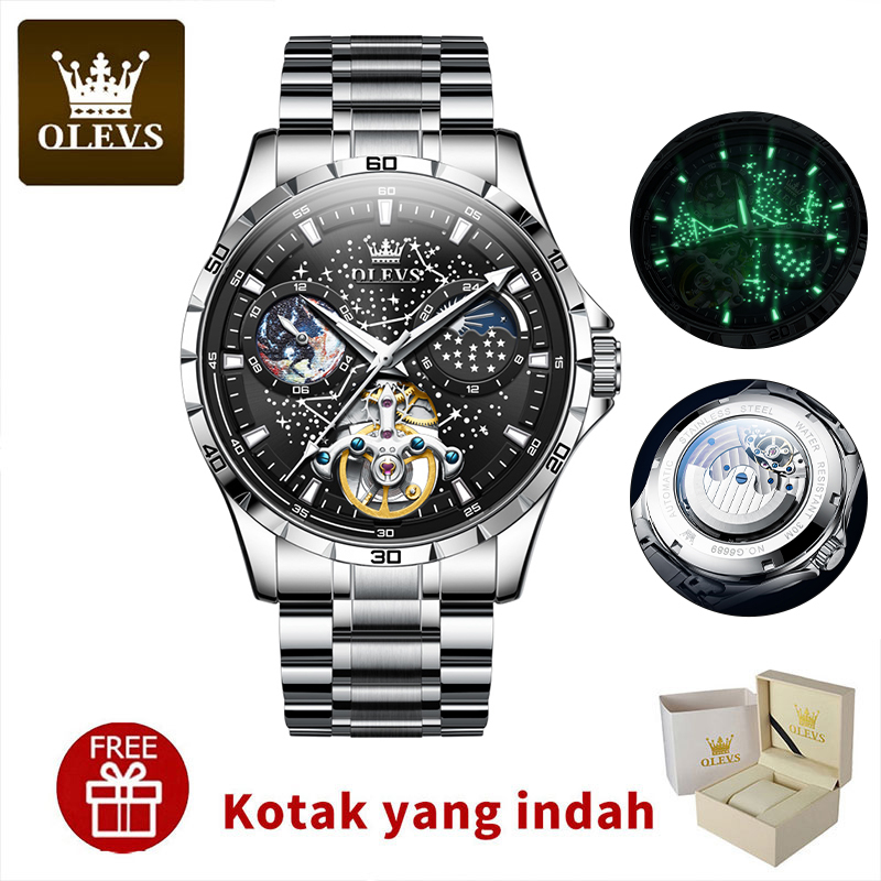 OLEVS Jam Tangan Automatic Pria Anti Air Original Terbaru Kaca Kekerasan Fashion Mewah Luxury Watch Men Cod