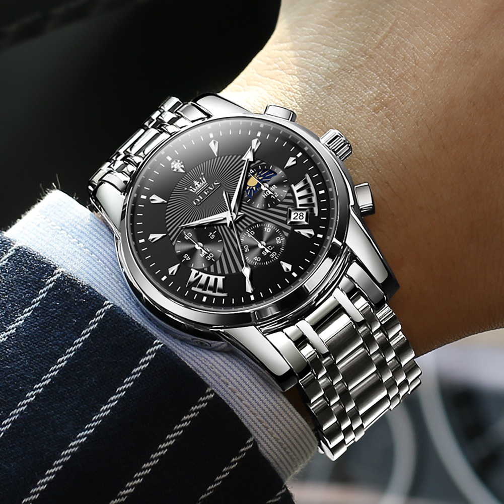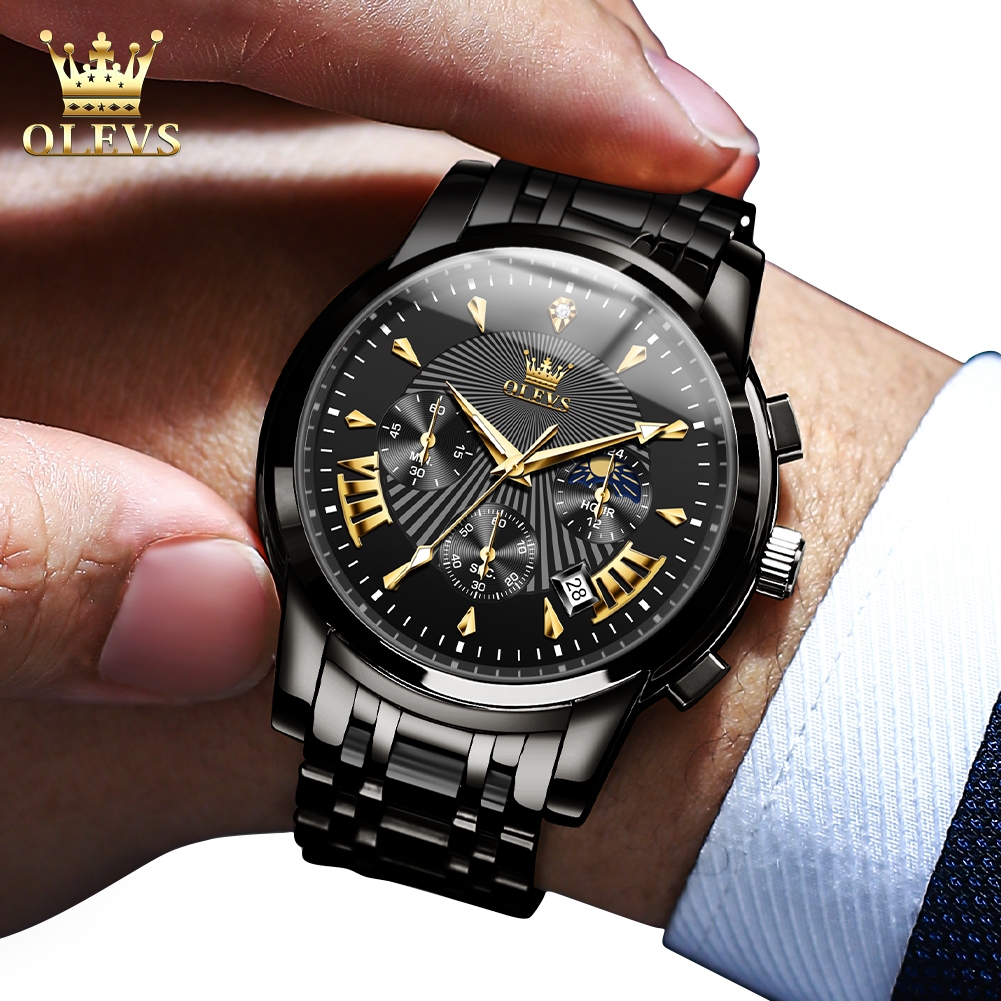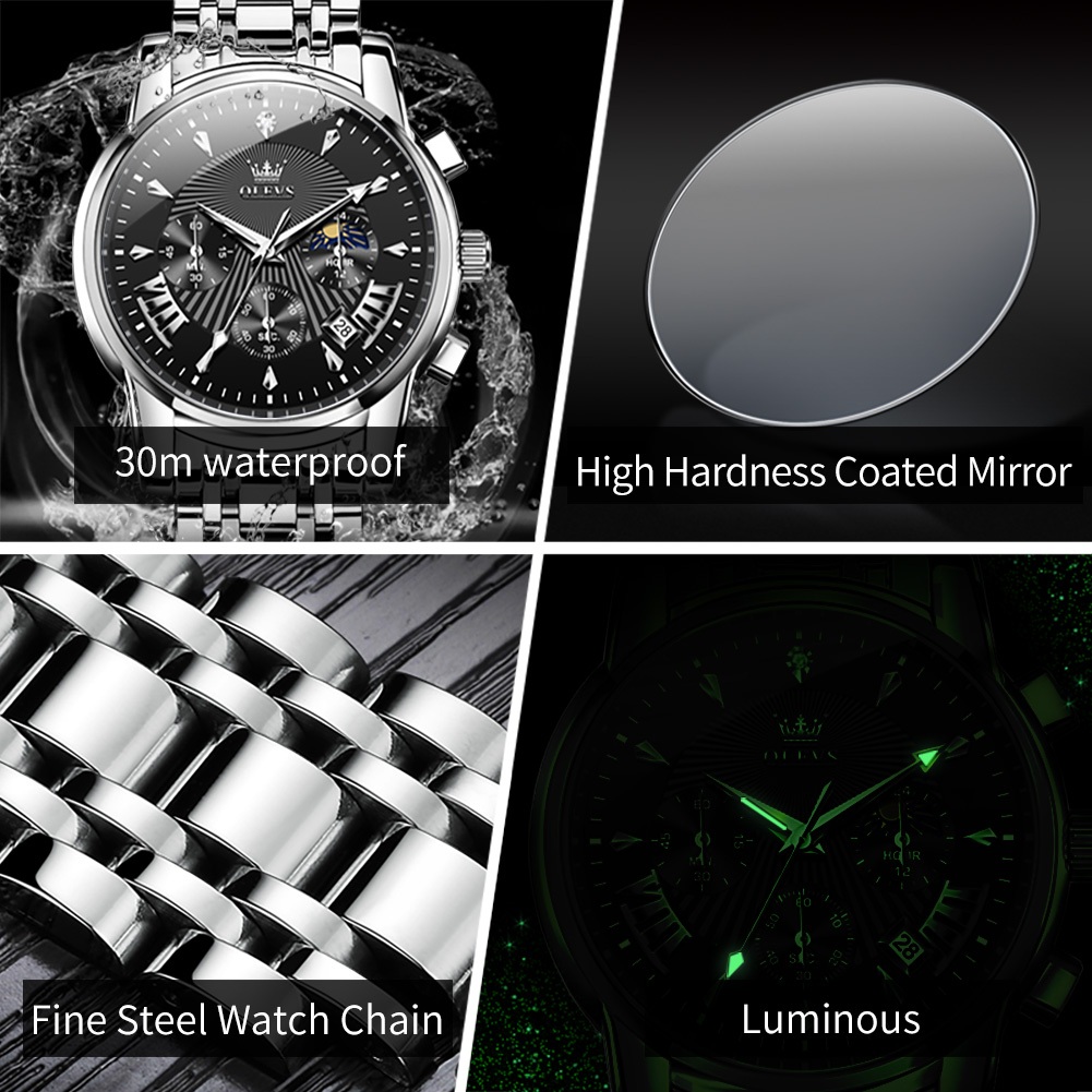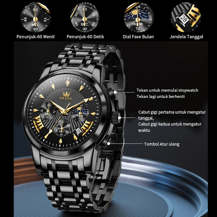 OLEVS Jam Tangan Pria Anti Air Original Cowok Chronograph Terbaru Tahan Luxury Led Sport Analog Stainless Steel Watch Men