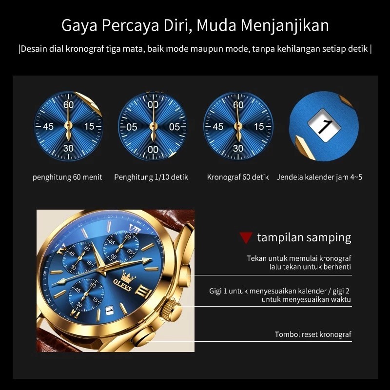 OLEVS Jam Tangan Pria Kulit Original Anti Air Kalender Otomatis kronograf Luminous Analog Watch 2872
