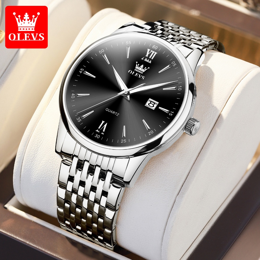 OLEVS Jam Tangan Pria Original Anti Air Cowok Kulit Strap Kalender Luminous Analog Arloji Bisnis Fashion Ready Stock Cod 5009
