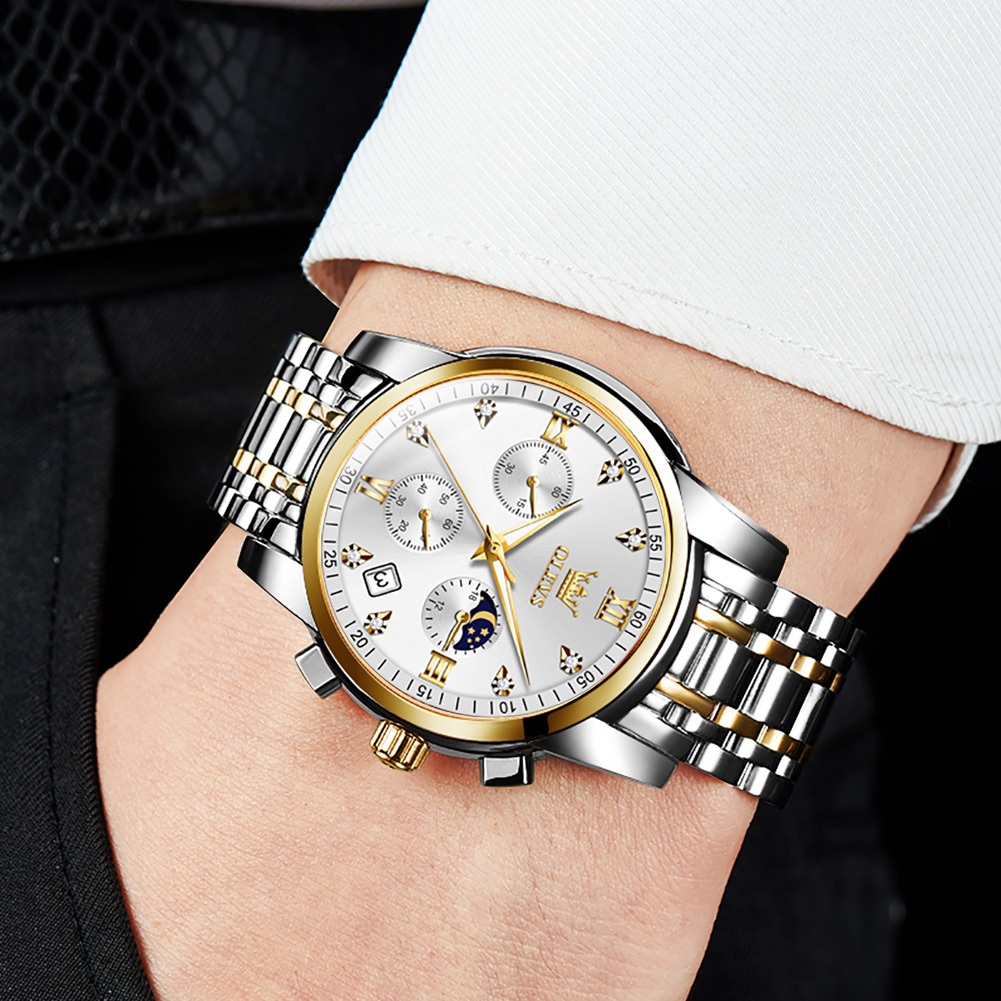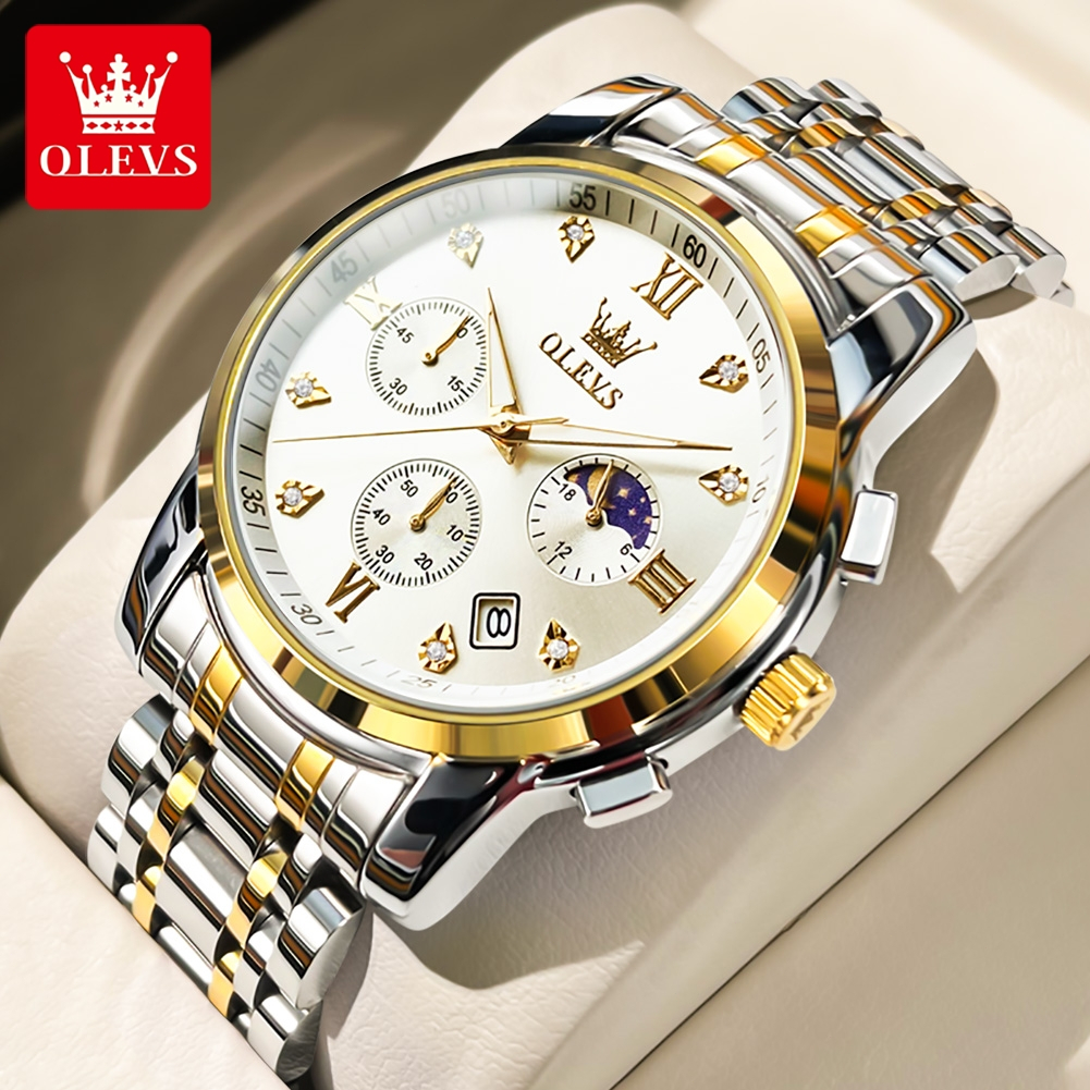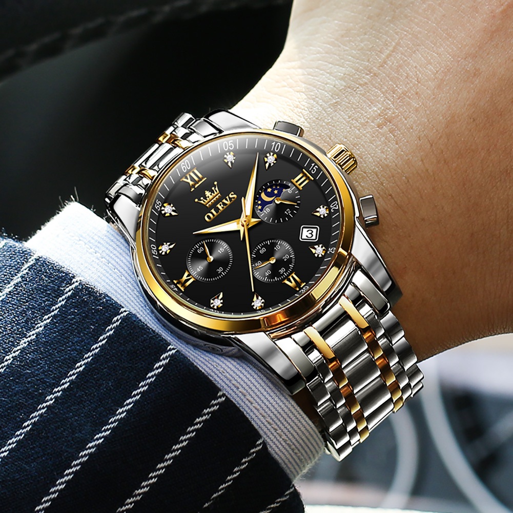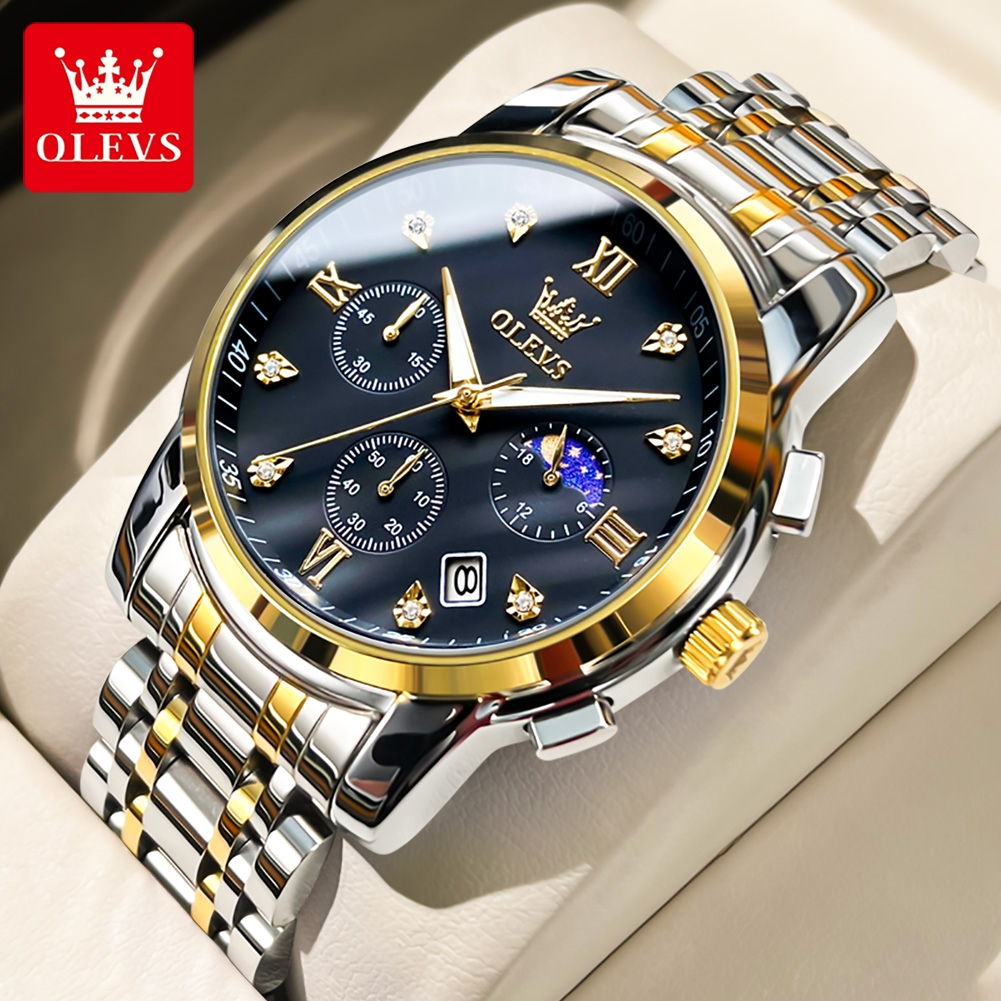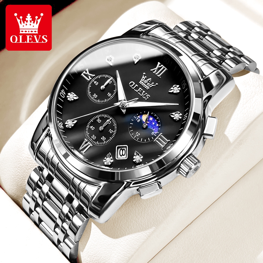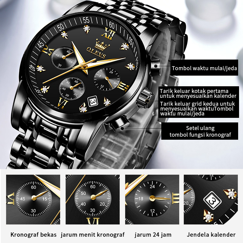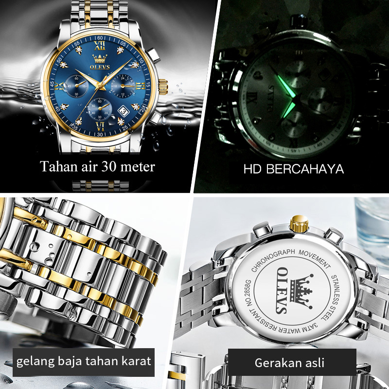 OLEVS Jam Tangan Pria Original Anti Air Tahan Led Sport Analog Chronograph Stainless Steel Watch Men