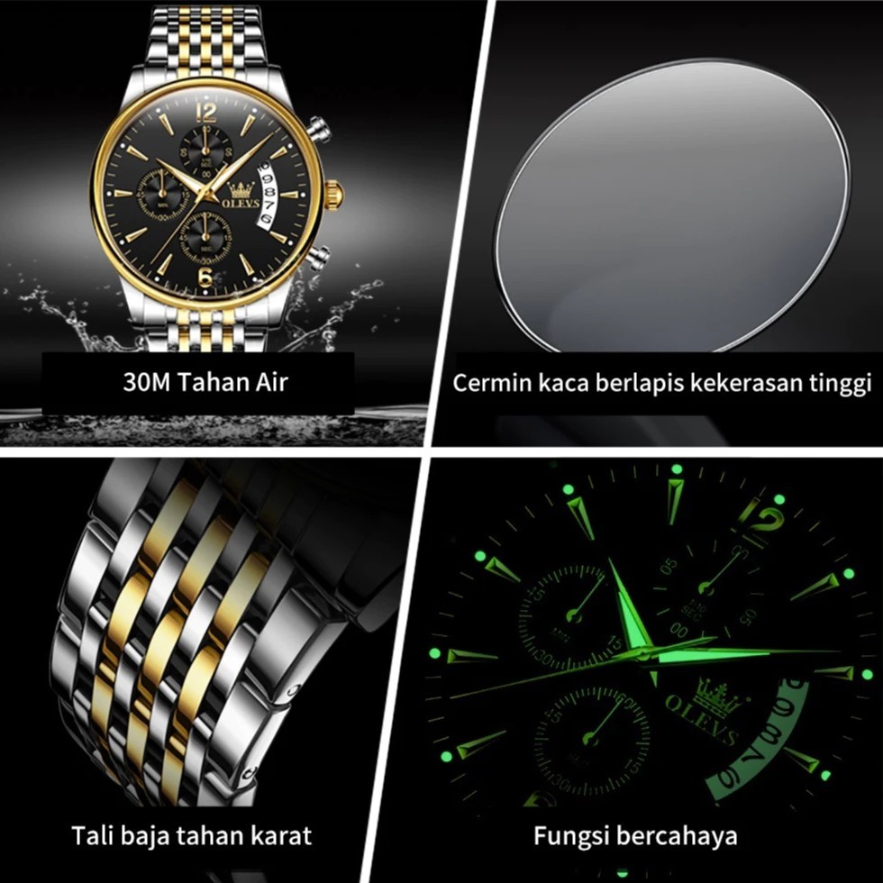 OLEVS Jam Tangan Pria Original Terbaru Anti Air Rantai Keren Mewah Luxury Stainless Steel Watch Men