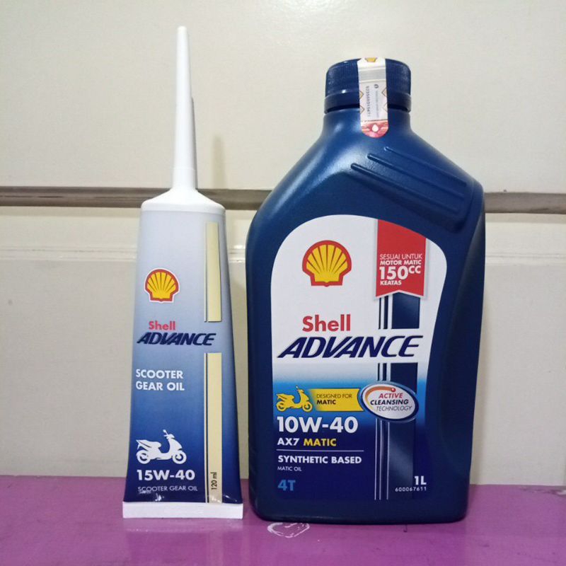 OLI SHELL ADVANCE MATIC AX7 10W-40 1L + OLI GARDAN SHELL 15W-40 ORIGINAL SYNTHETIC BASE UNTUK NMAX AEROK DLL 150CC