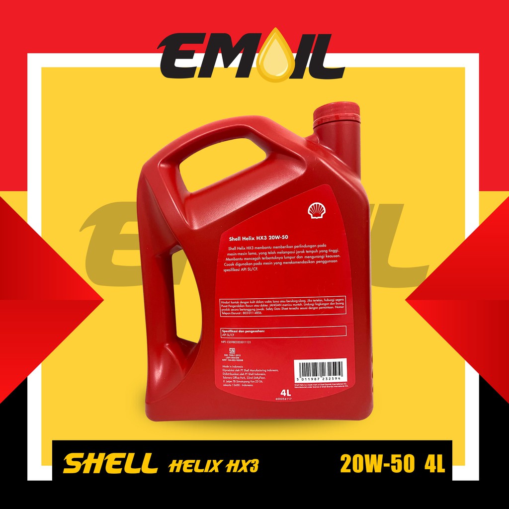 OLI SHELL HELIX HX3 SAE 20W-50 API SL/CF GALON 4 liter